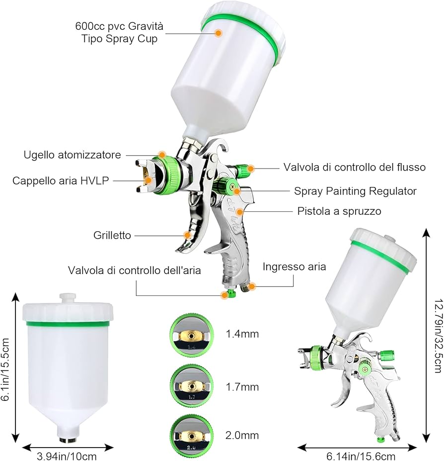 PISTOLA DI VERNICIATURA HVLP Set Aria Compressa Pistola A Spruzzo