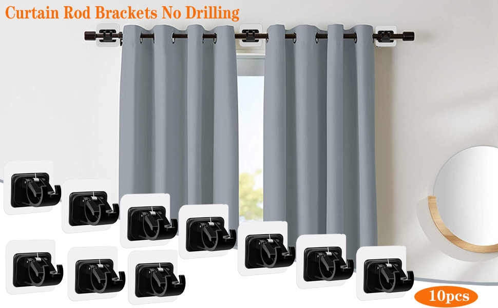 VIDSTW 2 Paia Ganci Per Tende Senza Bucare Staffa Autoadesivi Per Aste Per Tende Bastone Tenda Staffa Regolabile Bastoni Per Tende Collegarsi Per Maggior Parte Dei Bastoni Per Tende (Nero