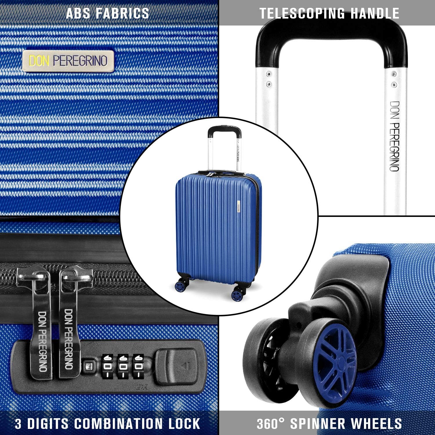 Valigia Rigida A Rotelle, Bagaglio A Mano 4 Ruote, ABS, Serratura
