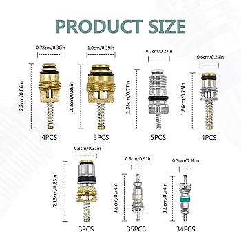Valvole Per Tubi Aria Condizionata + 102Pcs Accessori Nucleo Valvola Condizionatore D'Aria Auto A/C R134A/R12 Kit Di Strumenti Stelo Pneumatici Refrigerazione Con Assortimento Ricarica Clima Auto 3 PZ VALVOLE Refrigerante Aria Condizionata Valvola Condizionatore A Sfera Compatto EUR 19,17 Nucleo Valvola Aria Condizionata
