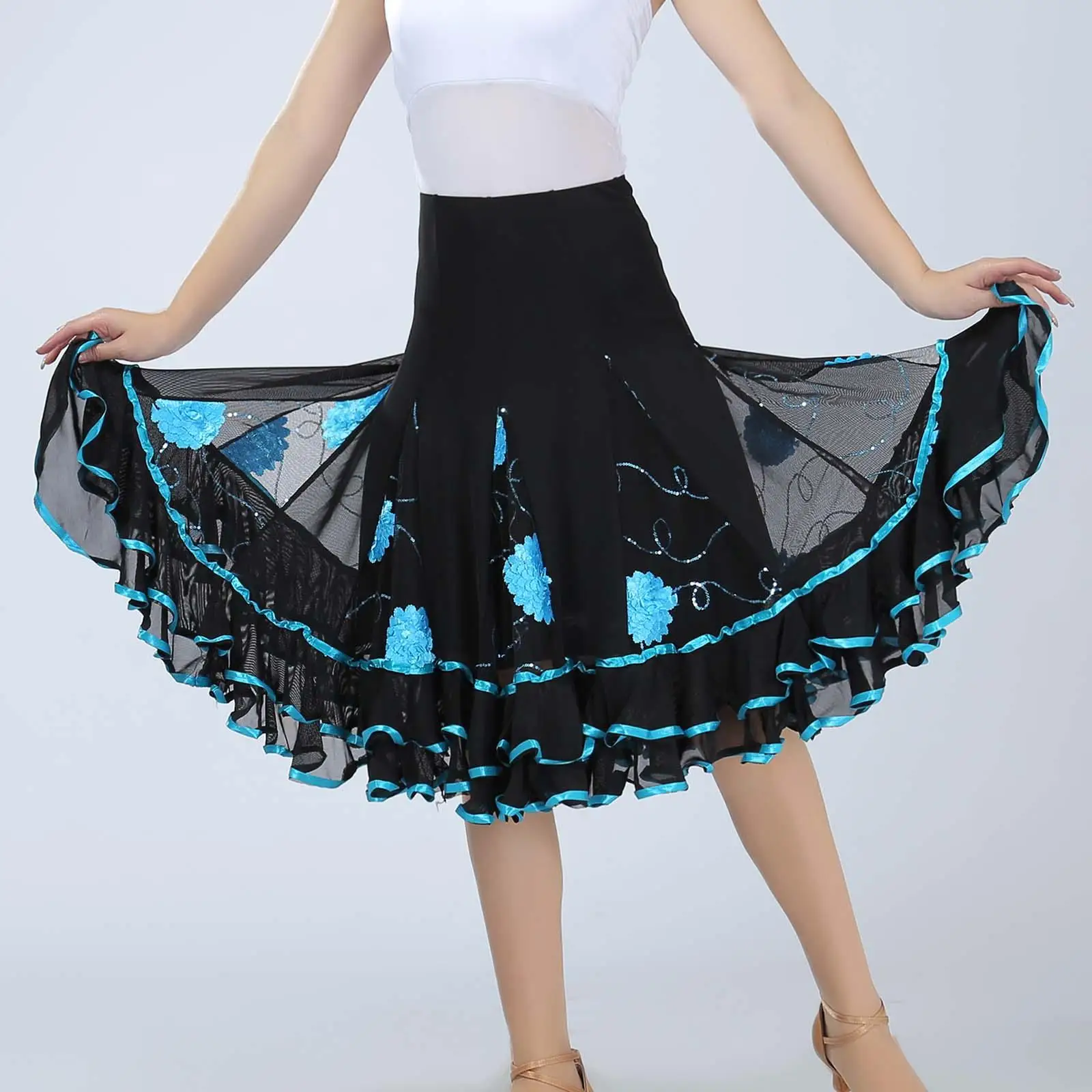 Gonna Da Ballo Flamenco Per Danza Del Valzer, In Tulle, Moderno, Blu Reale, 64 Cm, Nero, 64 Cm, 7 7/8