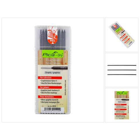 Pack of 24 Pica Fine Dry refills in special hardness HB for very fine and precise markings and labelling. With a line width of only 0.9 mm, these leads are ideal for woodworking and similar applications 24 mine Pica Fine Dry con durezza speciale H per marcature e scritte molto sottili e precise con una larghezza del tratto di soli 0,9 mm, ideali per la lavorazione del legno Con meccanismo a pressione high-tech per l'avanzamento automatico della mina e pratica protezione per la conservazione della carena Pennarelli 24 Vasalat Pica Marker Set - 0.9 Mechanical Pencil Pica Fine Dry Pennarello a foro profondo ricaricabile con grande gomma integrata – ideale per marcature e scritte sul legno Diametro della mina di soli 0,9 mm