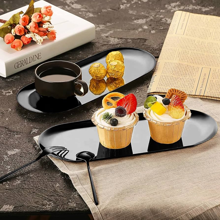 Vassoio Caffe 2Pcs , Vassoio Nero Acciaio Inox, Vassoio Bagno Portaoggetti Ovale Elegante Con Finitura Lucida, Piccolo, Vassoio Per Gioielli Dolci Spuntino Candele Vassoio Decorativo