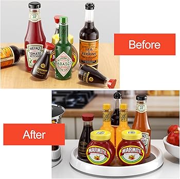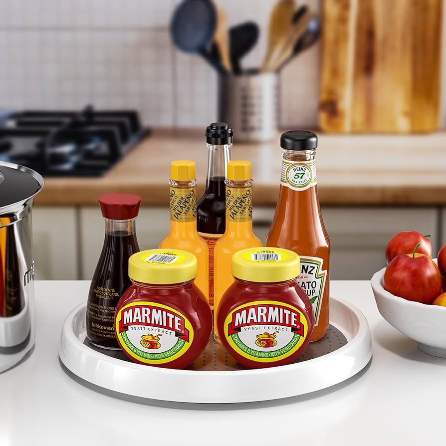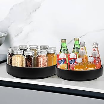 Risparmia spazio Può conservare in modo appropriato spezie, cibo in scatola, snack, condimenti, bevande, caffè, cosmetici e altri articoli, consentendoti di sfruttare al meglio lo spazio a tua disposizione e di mantenerlo sempre ordinato e organizzato. 【Salvaspazio, un must per la tua casa】Questo ripiano rotante nero è ampiamente utilizzato in cucine, bagni, soggiorni, armadi, piani di lavoro, specchiere e altre scene. Il portaspezie da cucina nero ha un aspetto elegante e arrotondato ed è dotato di parapetti rotondi ispessiti e rialzati per evitare che gli oggetti si ribaltino. È particolarmente adatto per le esigenze di accesso all'interno profondo armadietti, che migliorano notevolmente i requisiti di accesso. Pratico e funzionale : Questo piatto portaoggetti girevole è ideale in cucina o nella dispensa per conservare spezie, tè o altri piccoli barattoli Design girevole a 360° Basta ruotarlo per accedere a ciò che desideri. Il design aperto ti consente di accedere agli oggetti a tuo piacimento e non vi è alcun limite di altezza per lo stoccaggio: che si tratti di lattine o bottiglie di spezie di diverse altezze, possono essere facilmente sistemati. Portaspezie Girevole Relaxdays Vassoio Girevole, D 30 Cm, Organizer Per Frigorifero, Cucina Porta Olio Aceto Sale Pepe Descrizione prodotto I tuoi controsoffitti sono ancora in disordine? Hai ancora bisogno di uno scaffale di stoccaggio efficiente? NAROSEBE 2 Pezzi Piatto Girevole ------ Che si tratti di spezie e condimenti in cucina, bottiglie e barattoli in bagno o anche snack in soggiorno, può aiutarti a risparmiare spazio in modo intelligente, mantenere l'ambiente domestico ordinato e ordinato, realizzare veramente il multiuso di una cosa e migliorare facilmente la qualità della vita! 【Efficiente antiscivolo, sicuro e stabile】Il fondo del vassoio rotante è realizzato in plastica di alta qualità. Facile da pulire Per pulirlo, è sufficiente risciacquarlo con acqua e sapone neutro. 【Design Rotante a 360°】Il piatto girevole delle spezie adotta un design a rotazione libera a 360°, in modo che gli oggetti sul piatto girevole siano sempre chiaramente visibili. Nota: Quando si utilizza una scatola portaoggetti rotante, non fare affidamento sull'inerzia per ruotare rapidamente il telaio per evitare la caduta di oggetti. Materiali di alta qualità Realizzato in acciaio al carbonio di alta qualità, antiruggine, robusto e durevole. 【Acciaio al carbonio addensato di alta qualità】Il piatto girevole per spezie è realizzato in acciaio al carbonio di alta qualità, resistente alla ruggine, all'umidità e alla muffa, resistente e durevole.