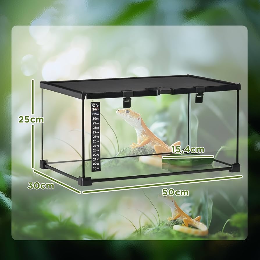 PawHut Terrario Per Rettili Rettili Scatola Di Alimentazione Con Ventilazione Laterale, Scatola Di Allevamento Rettili Con Coperchio Ribaltabile Per Anfibi, Aracnidi, Rovere, 80 X 50 X 50 Cm