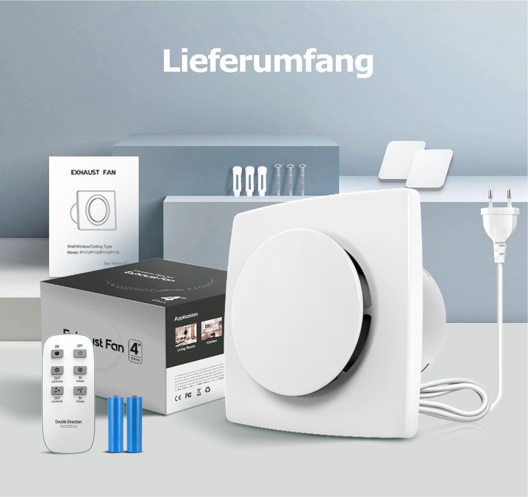 (Nota: El conducto de extracción no está incluido. 【Control Remoto Inteligente de 433MHz】Con botones impermeables y cómodos, permite un control perfecto dentro de un rango de 100 metros, permitiendo una operación fácil incluso en lugares como sótanos y áticos. Los niveles 1-2 son el modo de sueño con un nivel de ruido de aproximadamente 26-28 dB; Los niveles 3-4 son adecuados para la ventilación diaria, con un nivel de ruido de aproximadamente 30-32 dB; Los niveles 5-6 se usan para el intercambio rápido de aire, con un nivel de ruido de alrededor de 33-35 dB. También se puede configurar en dirección inversa para dejar que el aire fresco entre en la habitación desde el exterior, permitiendo una circulación interna y externa. 【Velocidad del Viento Ajustable en 6 Niveles】La velocidad de rotación varía de 1.500 a 3.000 RPM, y el volumen de aire está entre 90 y 220 m³/h. Aspiratore Bagno 100mm, Vento 2 Dir 6 Velocità con Luce Indicatrice. Aggiornato Ventola Aspirazione con 433 MHz Telecomando. Energico DC Motore, Facile Installare per Bagno Lavanderia Garage P106E2 6 luces indicadoras, azules para la entrada de aire y moradas para la extracción, que muestran la dirección del viento, lo que la hace fácil de usar. 【Motor de CC Sin Escobillas de Cobre Puro de Ahorro de Energía de 2W】Este extractor de aire ultra ahorrador de energía tiene una potencia de entrada total ≤ 8,5W, consume solo 0,2 kWh cada 24 horas y tiene una vida útil de más de 30.000 horas. Ofrece una garantía de 5 años y una respuesta del servicio al cliente 7/24. Para cualquier pregunta, por favor contacte directamente al vendedor sin necesidad de devolver el producto. El ruido de funcionamiento es un 30 % menor que el de los productos similares, solo variando entre 26 y 35 dB. 【Viento de Recirculación de 2 Vías & 6 Luces Indicadoras de Velocidad】Tiene un modo de viento de 2 vías (adelante y atrás), que puede evacuar rápidamente olores y humedad. Su potente rendimiento de ventilación está impulsado por un motor de doble rodamiento de bolas y núcleo de cobre puro, con una temperatura < 20K, una excelente resistencia a las altas y bajas temperaturas y una alta eficiencia energética. Aspiratore Bagno Silenzioso E Potente Vortice Aspiratore Bagno 100mm, Vento 2 Dir 6 Velocità Con Luce Aspiratore Bagno A Batteria Tiene una clasificación de impermeabilidad IPX4 y está hecho de materiales PC+ABS seguros y duraderos, con propiedades como la resistencia a la corrosión, la resistencia al impacto, la reducción de ruido y la resistencia al envejecimiento. Es adecuado para diversos escenarios como baños, áticos, garajes, sótanos, lavanderías, baños y talleres. Admite tres métodos de instalación en paredes, techos y vidrios.