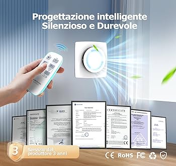 Aspiratore Bagno 100mm, Vento 2 Dir 6 Velocità Con Luce