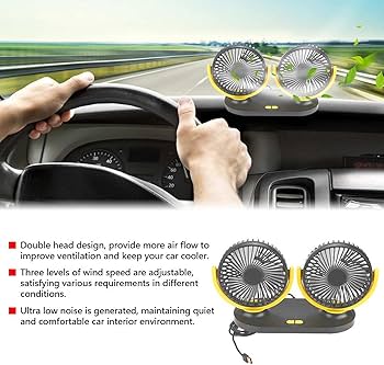Ventilatore Per Auto A Doppia Testa CC 12V Ventola Di Raffreddamento Ad Aria Automatica Ventilatori Per Auto Elettriche Da Cruscotto A 2 Velocità Silenziosi E Potenti
