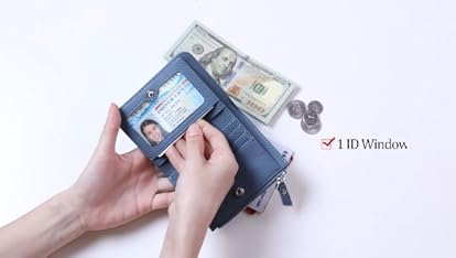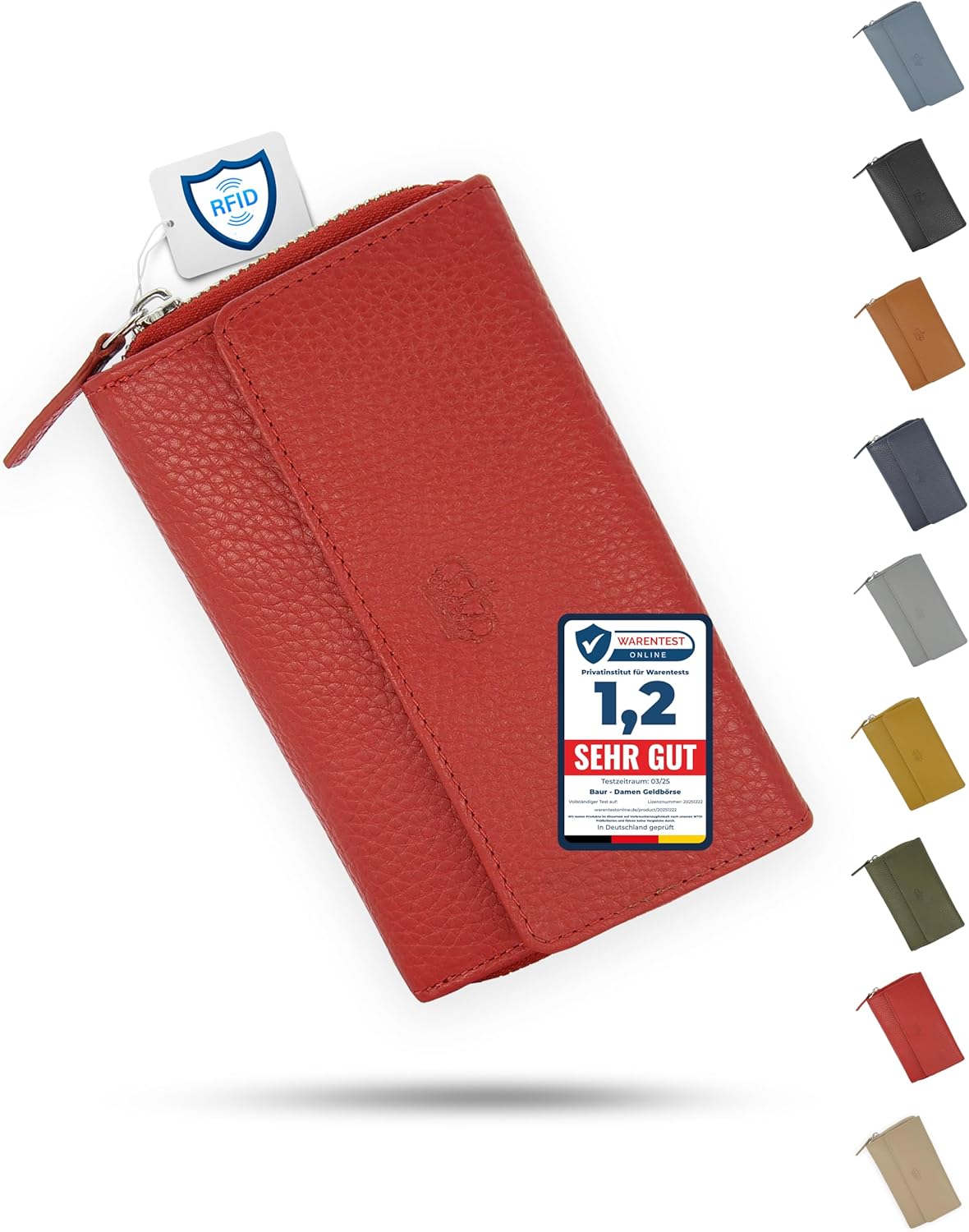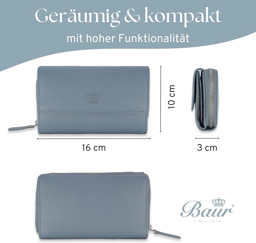 Baur - Portafoglio In Vera Pelle | Portafoglio Donna | Protezione RFID | Portafoglio Grande Con Tanti Scomparti Per Carte | Chiusura A Bottone E Portamonete Con Cerniera | Blu Colomba : Amazon.it: Moda