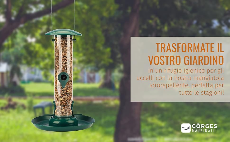 Il fondo montato nella casetta per ricci Wildlife Friend non solo protegge dall'umidità, ma anche dai predatori del cibo, perché nessun altro animale selvatico può scavare l'hotel di ricci. 🍃 TUTTO L'ANNO: La casetta per uccelli da appendere può essere facilmente riempita con l'aiuto del coperchio girevole Attira determinate specie di animali piantando fiori mirati, arbusti o alberi o offre agli animali cassette nido e quartiere di svernamento. Naturalmente i piccoli visitatori sono felici anche di una dieta equilibrata e di una ricca offerta di cibo scoiattolo Lo scoiattolo è attivo tutto l'anno. Naturalmente i piccoli visitatori sono felici anche di una dieta equilibrata e di una ricca offerta di cibo insetti Gli insetti, come le nostre api, aiutano a impollinare innumerevoli piante. La mangiatoia per scoiattolo Wildlife Friend promette una lunga durata del cibo grazie all'uso di legno di pino non trattato e traspirante. Dimensioni: 21,5 x 21,5 x 35cm (LxPxA) Chiusura a baionetta nella parte inferiore Per il riempimento del distributore di mangime è adatto esclusivamente al mangime di semi Utilizzabile per l'alimentazione di uccelli selvatici. La chiusura richiudibile protegge la mangiatoia non solo dall'umidità, ma anche dai concorrenti alimentari Casetta Per Uccellini Da Esterno WILDLIFE FRIEND I Mangiatoia Per Uccelli, Verde – Con 4 Ripiani Per Avvicinamento, Casetta Per Fontana Solare - Marie von Ebner-Eschenbach 100% naturale Con un giardino naturale si crea uno spazio in cui persone e animali si sentono a proprio agio. Pratico gancio per appenderlo Inoltre la colonna di mangime è dotata di un grande piatto di raccolta, che raccoglie in modo affidabile il mangime in eccesso. L'uso di prodotti naturali supporta questa offerta aggiuntiva. 🦜 ROBUSTA: La mangiatoia per uccelli ha una grande piastra di raccolta per il cibo in eccesso per sporcare meno il giardino 100% compatibile con la specie L'elevata varietà di specie garantisce stabilità e equilibrio in un ecosistema. Fori di drenaggio dell'acqua piovana per lo scarico dell'acqua 100% resistente alle intemperie La diversità biologica, la ricchezza della natura, è forse il bene più importante del nostro pianeta. Un luogo resistente all'inverno per ricci Naturalmente i piccoli visitatori sono felici anche di una dieta equilibrata e di una ricca offerta di cibo Riccio I ricci sono animali protetti e un benvenuto animale da compagnia nel proprio giardino, perché le lumache sono molto ben in alto. Più tempo per la protezione della natura. Naturalmente i piccoli visitatori sono felici anche di una dieta equilibrata e di una ricca offerta di cibo Uccelli da giardino Più della metà di tutte le specie di uccelli sono ormai considerate a rischio in Germania. Il fondo è dotato di fori di drenaggio per la pioggia. La casetta per il nido può essere montata facilmente in giardino tramite la barra di fissaggio con fori preforati WILDLIFE FRIEND I Mangiatoia per Uccelli da Appendere - campana (e4n) EUR 29,73 Compralo Subito , Spedizione gratuita , 30-Giorno Restituzione, Garanzia cliente eBay Venditore: buylove2000 ️ (72.266) 99.4% , Luogo in cui si trova l'oggetto: 29015, IT , Spedizione verso: IT, Numero oggetto 🐦 IDROREPELLENTE: La mangiatoia per uccelli è fatta di plastica. I prodotti Wildlife Friend servono a sostenere la varietà delle specie nel tuo giardino In autunno inizia a posare scorte per la sua tranquillità invernale. La casetta per insetti Wildlife Friend in legno naturale non trattato offre numerose specie di insetti un rifugio e un nido adeguati. 🥜 CAPACITÀ DI ALIMENTAZIONE: Il mangime di grano è adatto a riempire l'alimentatore. L'applicazione di Wildlife Friend mangiatoia e mangiatoie per uccelli è un primo passo importante per sostenere le specie locali.