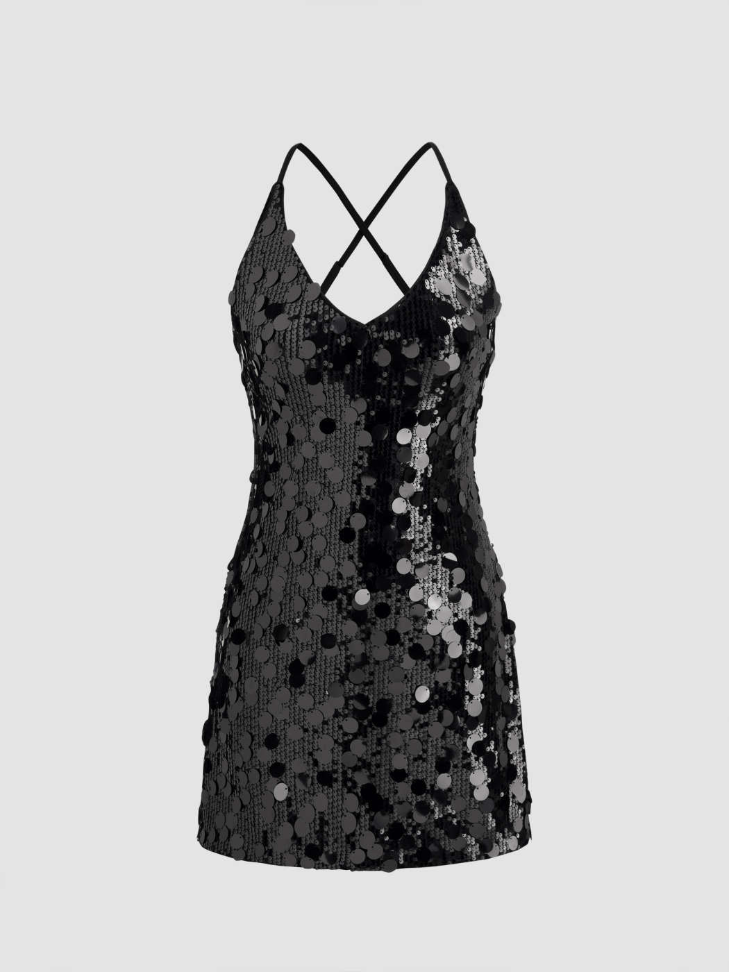 Vestito Paillettes Donna Con Paillettes Con Scollo A V Abito Da Sera Maniche Lunghe A Vita Alta Vestito Donna Elegante Mini Con Glitter Tubino Cocktail Sexy Festa Abiti Moda Nero Slim Capodanno