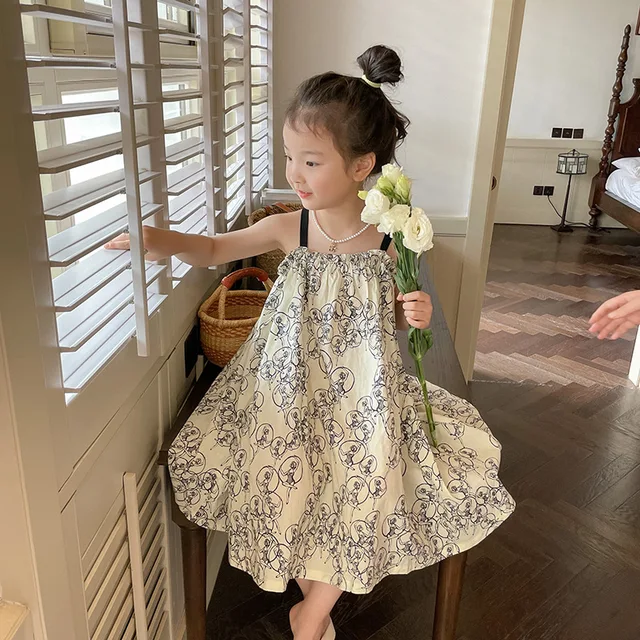 Vesto Con Bretelle Per Le Vacanze Estive Del Bambino Delle Ragazze Abbigliamento Per Bambini Temperamento Stampa Completa Vesto Da Spiaggia Di Grandi Dimensioni Vesti Per Bambini Di Moda