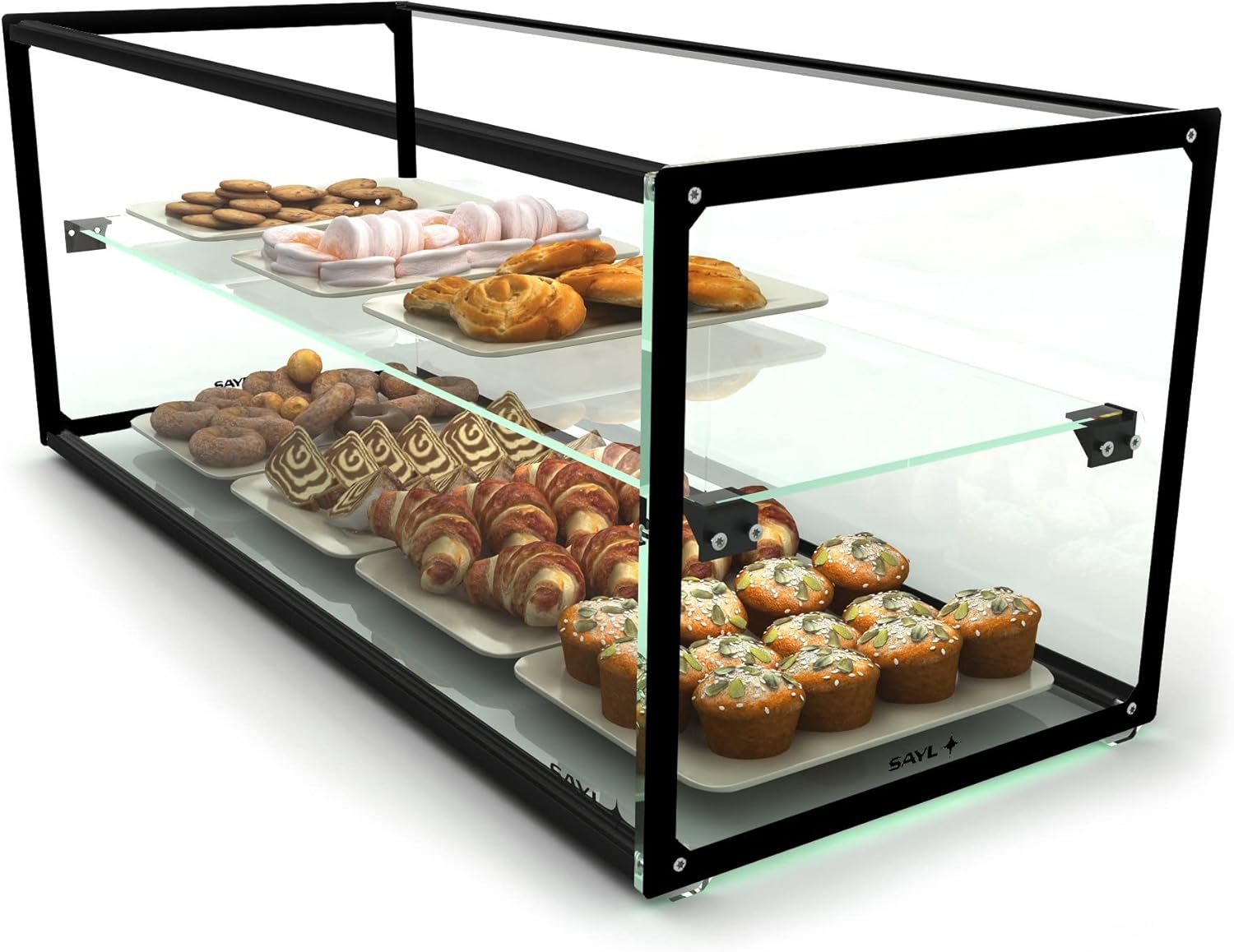Vetrina in vetro bianco, 125 x 43 x 37 cm, moderna vetrina in vetro con 3 ripiani e illuminazione a LED, ideale per vino, libri e oggetti da collezione, soggiorno, ufficio, cucina, sicura ed elegante Vetrina Refrigerata Vetrina Da Banco Per Alimenti E Oggetti Vetrinetta Per Bar Da Banco Vetrinetta espositiva da banco, rettangolare, con due ripiani, per dolci e pasticcini.