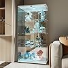 Vetrina In Vetro A 4 Strati, Vetrinetta Espositiva LED, Vetrina Moderna Per Soggiorno Con Serratura E Pannello Posteriore A Specchio, Vetrine Per Negozio Collezionismo, 164x42.5x36.5 Cm, Bianco
