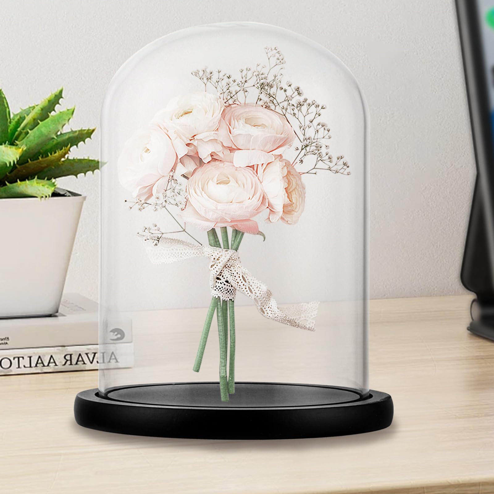 ZOFUN Campana In Vetro Con Fondo In Legno, 10 Cm, Cupola In Vetro Con Fondo In Legno, Trasparente, Per Bambole, Candele, Oggetti Da Collezione