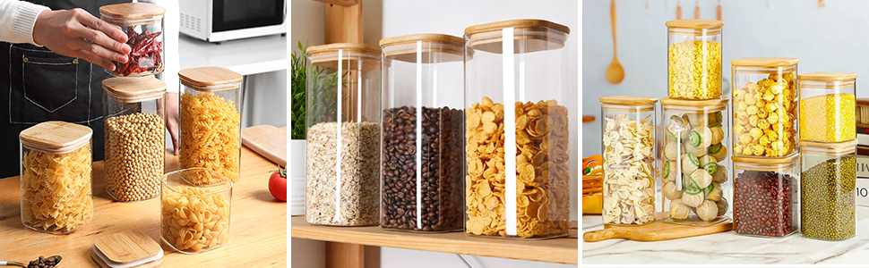 BARATTOLI CUCINA 12 Pcs Vetro, Ermetici, Con Coperchio Di