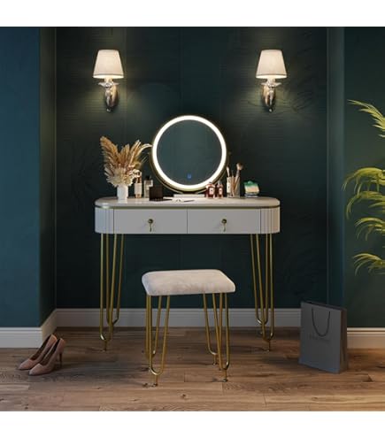 Vicco Tavolo Da Toeletta Sherry, Bianco Lucido, 120 Cm Con Specchio E Sgabello A LED : Amazon.it
