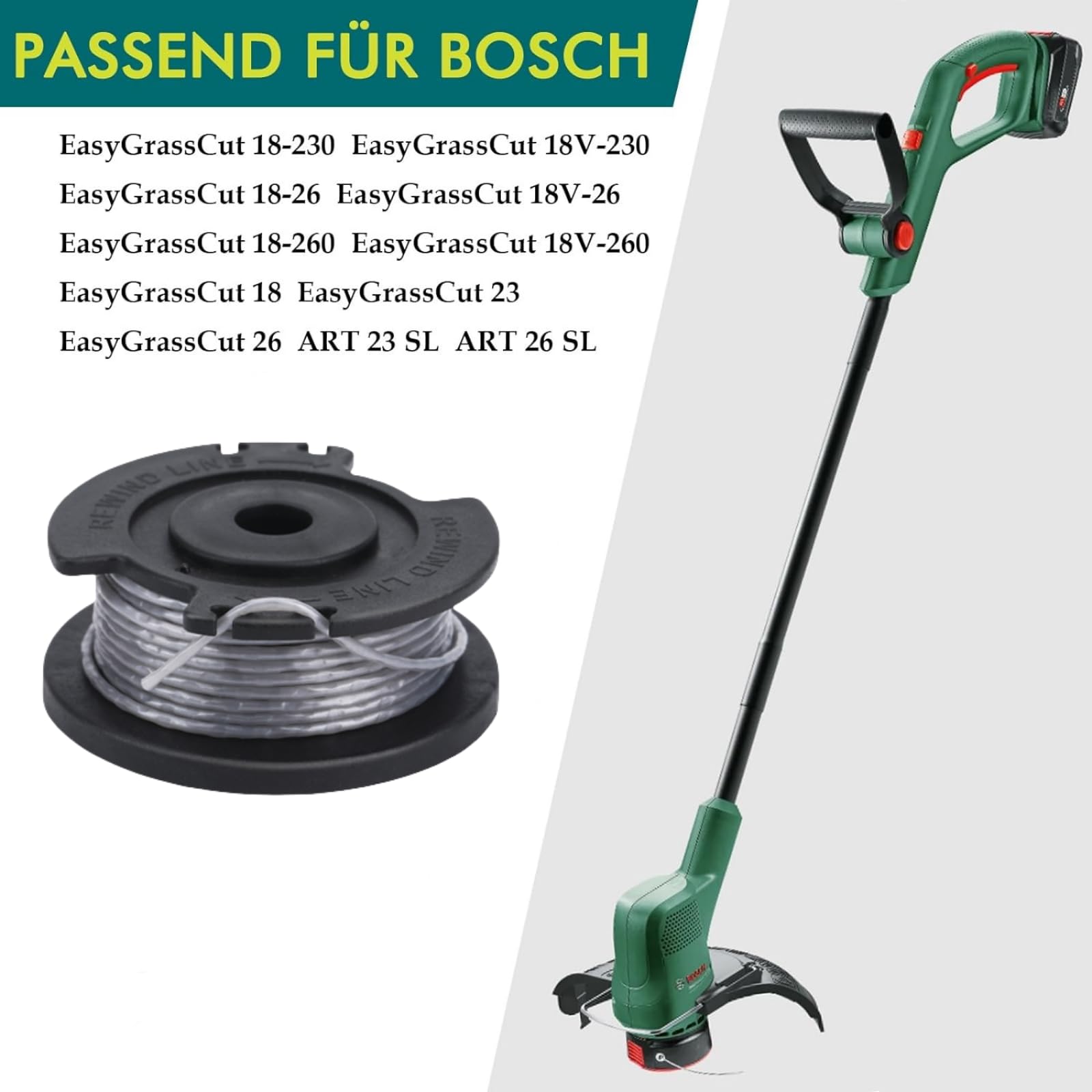 Filo Decespugliatore Viilich Bobina Di Filo Per Decespugliatore Bosch ART 23 SL/ART 26 Filo Decespugliatore 4mm Compatibile con i modelli di tosaerba: Bosch EasyGrassCut 18V-230, 18V-26, 18V-260, 18, 18-230, 18-26, 18-260, EasyGrassCut 23, 26 e ART 23SL, 26SL. Bobina di filo per decespugliatore: per tagliaerba adatto per Bosch STRIMMER ART 23 SL (3600HA5000), ART 23 SL (3600HA5070), ART 2300 (3600HA5002), ART 23-28 (3600HA5001), ART 26600HA5001, ART 26600HA5001 Compatibile con bobina di ricambio per decespugliatore modello: F016800569/F016800385 Specifiche: Materiali di alta qualità: ABS e nylon Lunghezza: 4,9 m Diametro: 1,65 mm Contenuto della 6 bobine di ricambio Nota: Questo prodotto è stato appositamente progettato per essere compatibile con i marchi indicati e non è un pezzo originale. La forma aerodinamica riduce la resistenza dell'aria e garantisce tagli più veloci ed efficaci, indipendentemente dalle condizioni. In questo modo guadagnerai tempo prezioso e riduci il dispendio energetico durante il giardinaggio. Efficiente potenza di taglio: grazie al cavo elastico e resistente, l'energia viene utilizzata in modo ottimale durante l'uso. Dettagli del prodotto e contenuto della confezione: nella confezione sono incluse 6 bobine di ricambio F016800569/F016800385. Ogni bobina ha un diametro di 1,65 mm e una generosa lunghezza di 4,9 m, quindi è ideale per la cura del prato.
