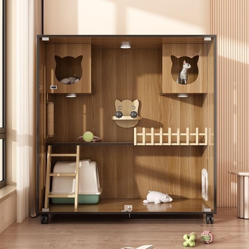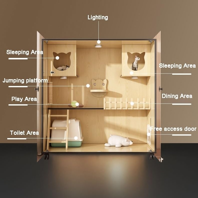Villa Del Gatto Gabbia For Gatti, Nido For Gatti Domestici, Villa For Gatti, Gabinetto For Gatti In Legno, Allevamento Interno, Casa For Gatti, Casa For Gatti A Due Piani, Spazio Extra Large