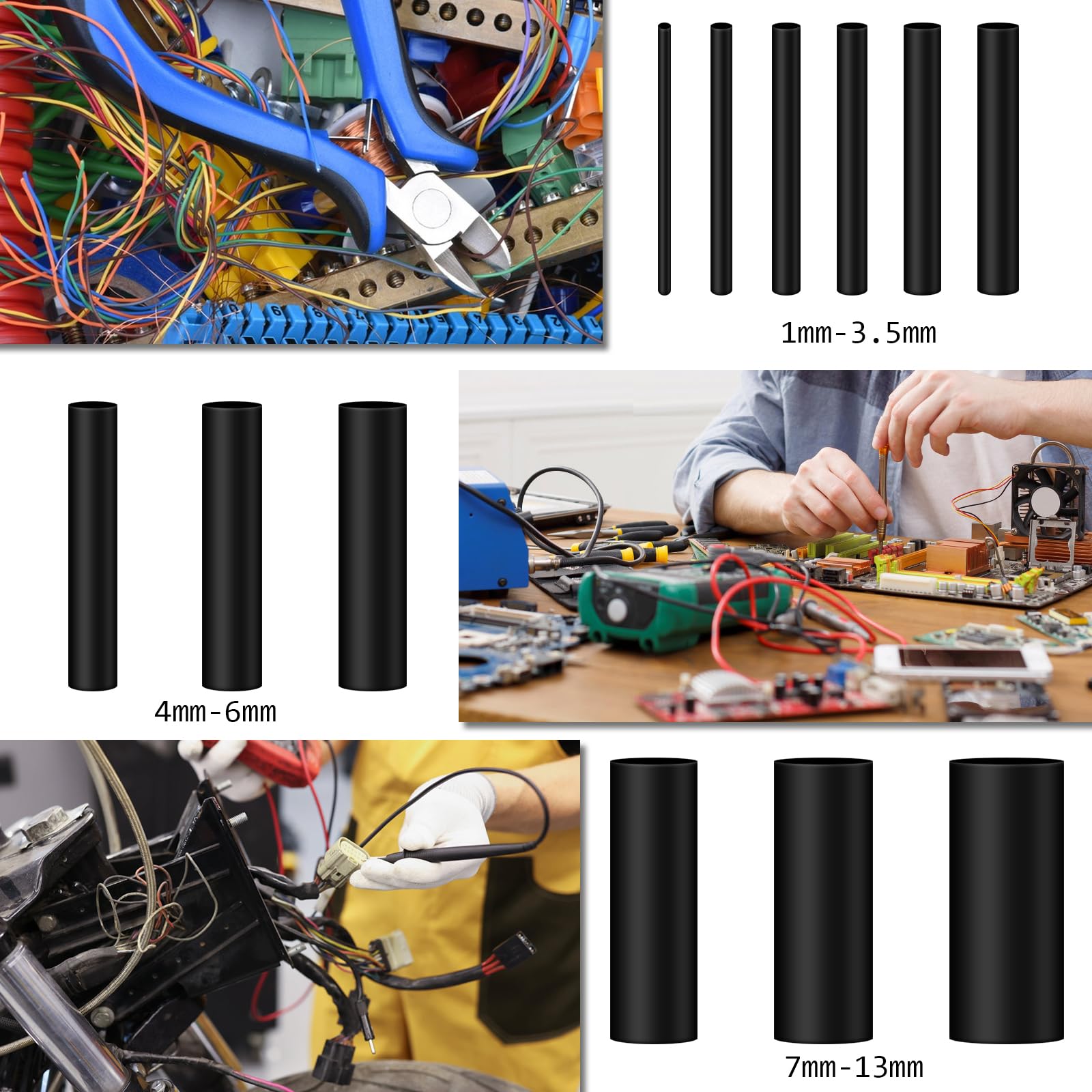 VMUTGA 900 Pezzi Guaina Termorestringente , 12 Taglia Tubo Termorestringente Nero Restringimento Rapporto 2 : 1 Kit Tubo Termoretraibile per Isolamento Elettrico Riparazioni Cavi Elettrici Assortimento 【Ampia applicazione】I set di tubi termoretraibili isolano o proteggono efficacemente i cavi nell'industria o in casa e sono adatti per la riparazione di fili rotti, l'isolamento elettrico, la protezione meccanica, il collegamento di fili/cavi e anche per il fissaggio di connessioni in progetti artigianali. 【Facile da usare】È sufficiente far scorrere la guaina termorestringente sul cavo, riscaldarla con una pistola termica o un accendino e in pochi secondi si restringerà fino a raggiungere le dimensioni desiderate. Guaina Termorestringente Vinabo 780 Pezzi , Per Isolamento Elettrico, 12 Misure - Rapporto Di Contrazione 2:1-4 Colori Termorestringente Per Cavi Elettrici 【Rapporto di restringimento 2:1】 Le guaine termoretraibili hanno solo la metà del loro diametro originale dopo il riscaldamento, quindi si adattano saldamente a fili e cavi, impediscono l'ingresso di umidità, polvere e altri contaminanti e prolungano la durata dei dispositivi elettronici. Quantità sufficiente per soddisfare tutte le vostre esigenze.