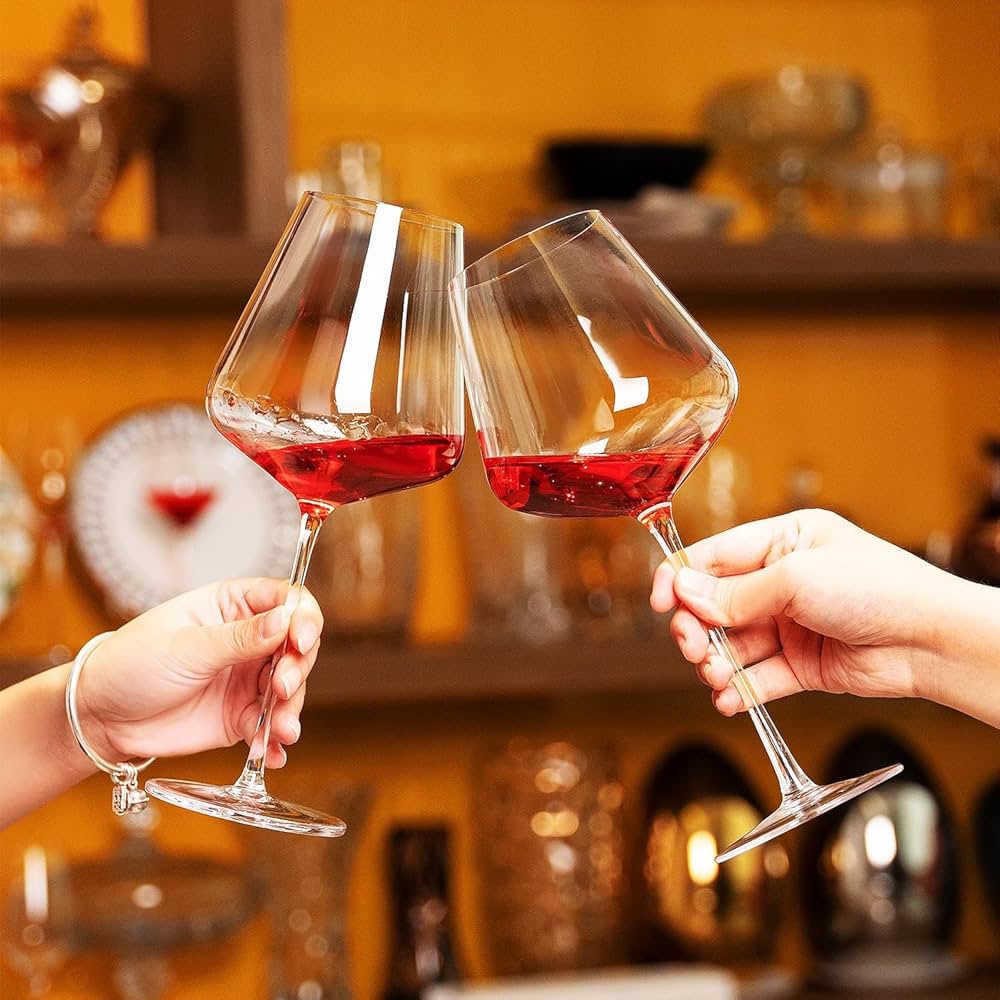 Vino Rosso FXNFXLA Bicchiere Da Vino Rotante, Bicchiere Da Vino A Stelo Lungo In Alluminio Per E Bianco Con Cristalli, Vetro Trasparente, Corpo Tazza Set Bicchieri Set di 2 bicchieri da vino in vetro soffiato a bocca, in vetro trasparente, con manico lungo, per vino rosso e bianco, regali di Natale, bicchieri da vino rosso, per donne, uomini, matrimoni e compleanni