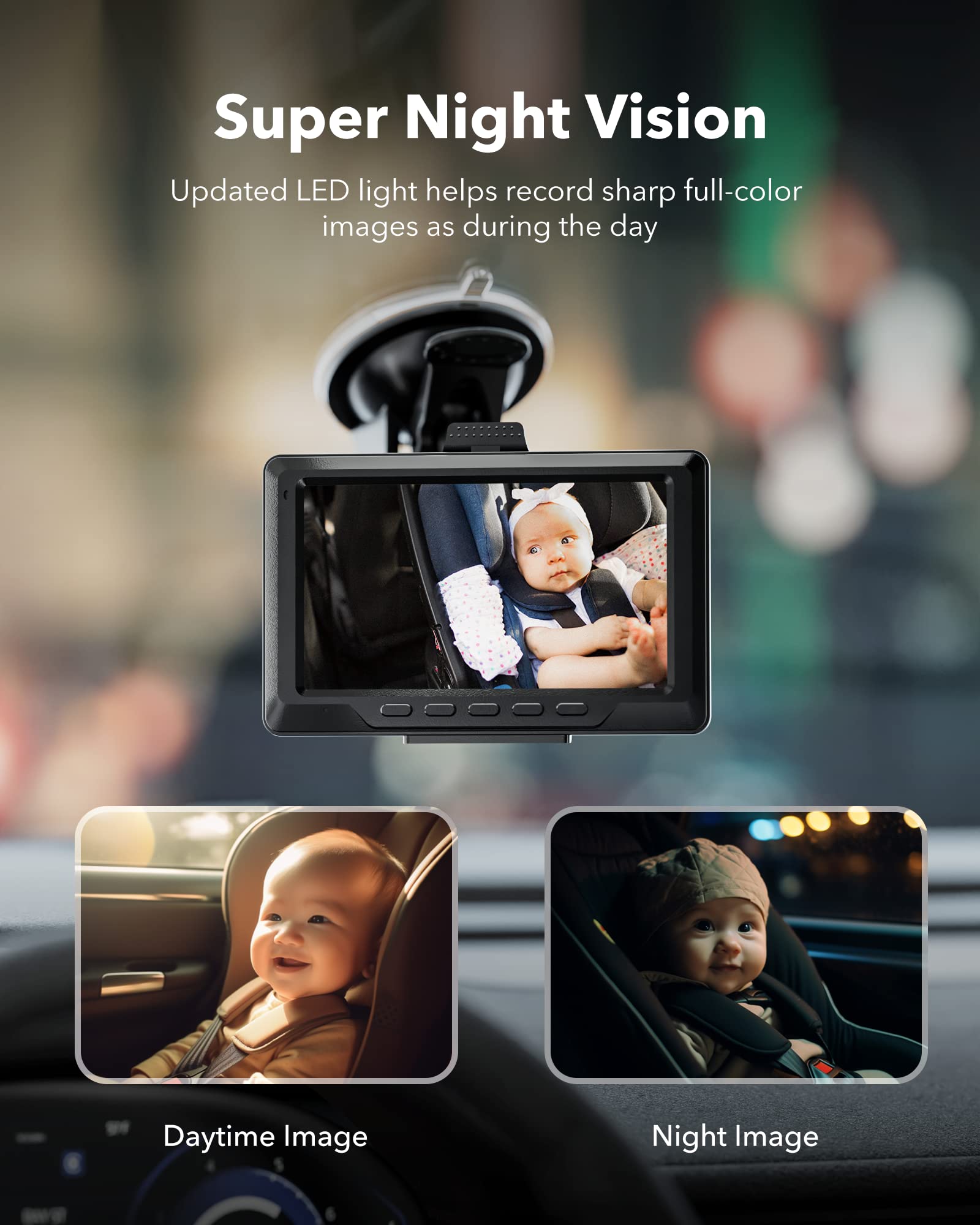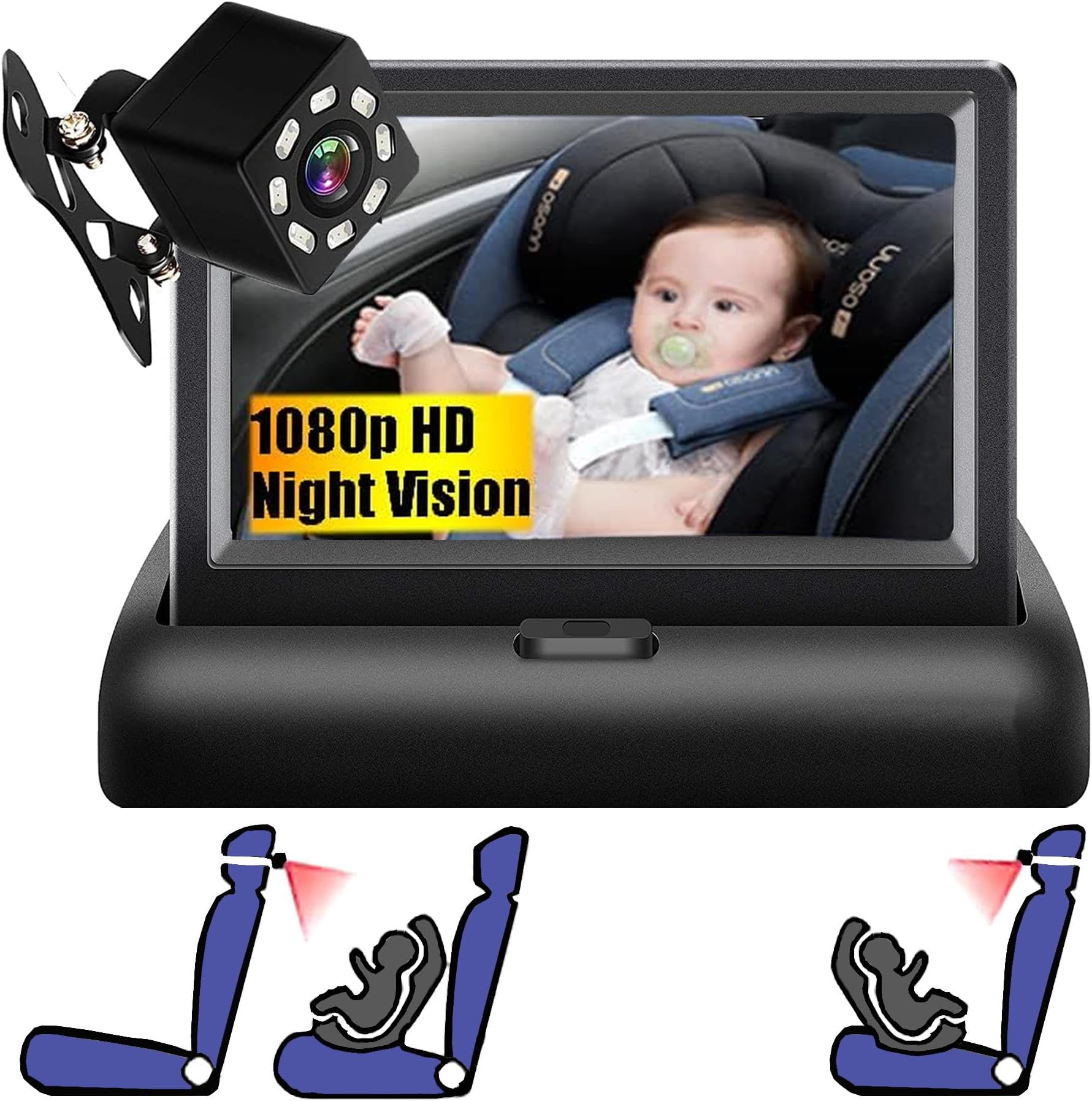 Baby Car Camera, 4,3 HD IR Night Vision Baby Mirror With 178° Wide View, IPS Display Rear Facing Monitor For Infants, Kids, Toddler & New Parents