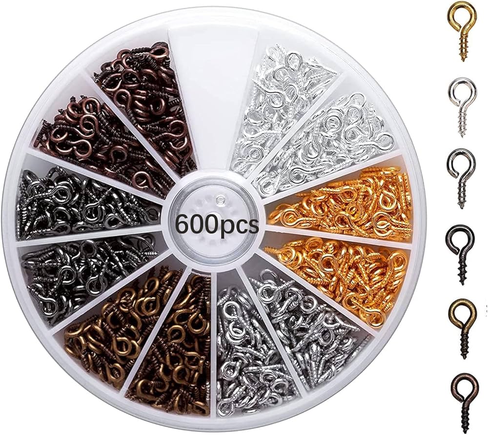 600 Ganci A Vite A Occhiello In 6 Colori, Piccoli Ganci In Metallo, Mini Pioli, Autofilettanti, Per La Creazione Di Gioielli Fai Da Te (4 X 8 Mm