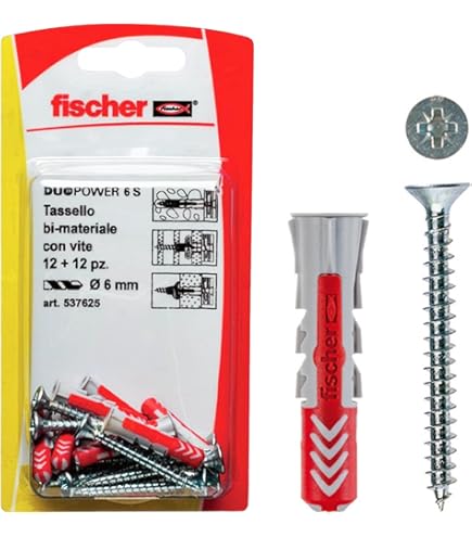 Fischer 6 Tasselli Duopower Con Vite E 1 Punta Trapano, 8 X 40 Mm