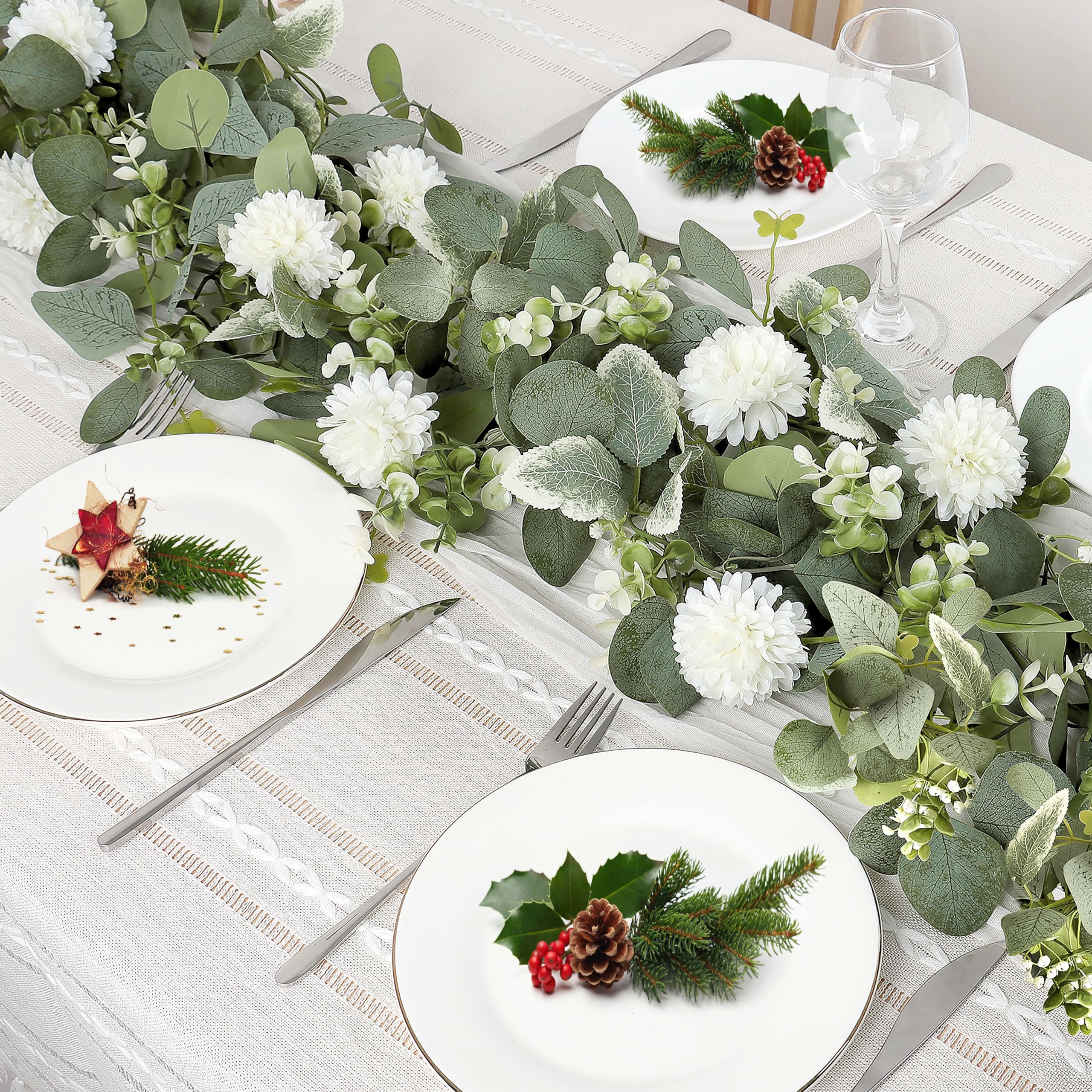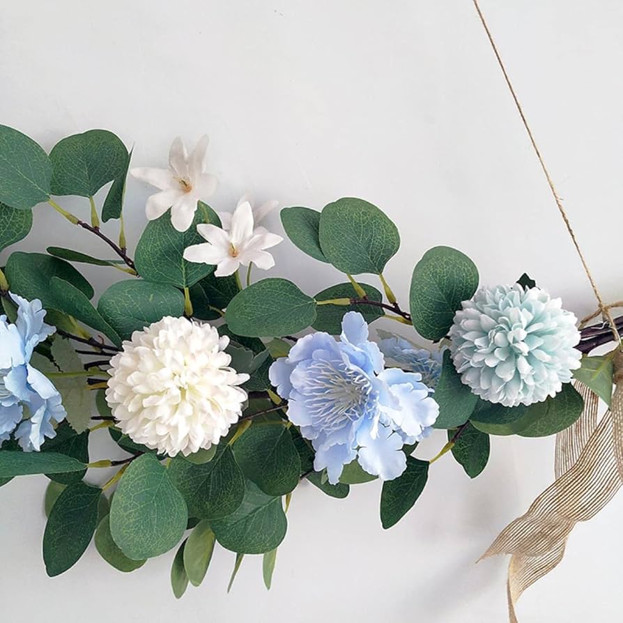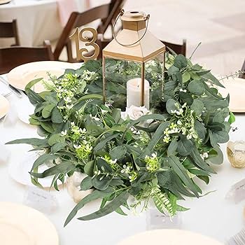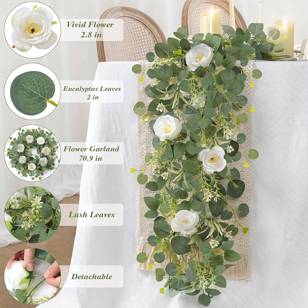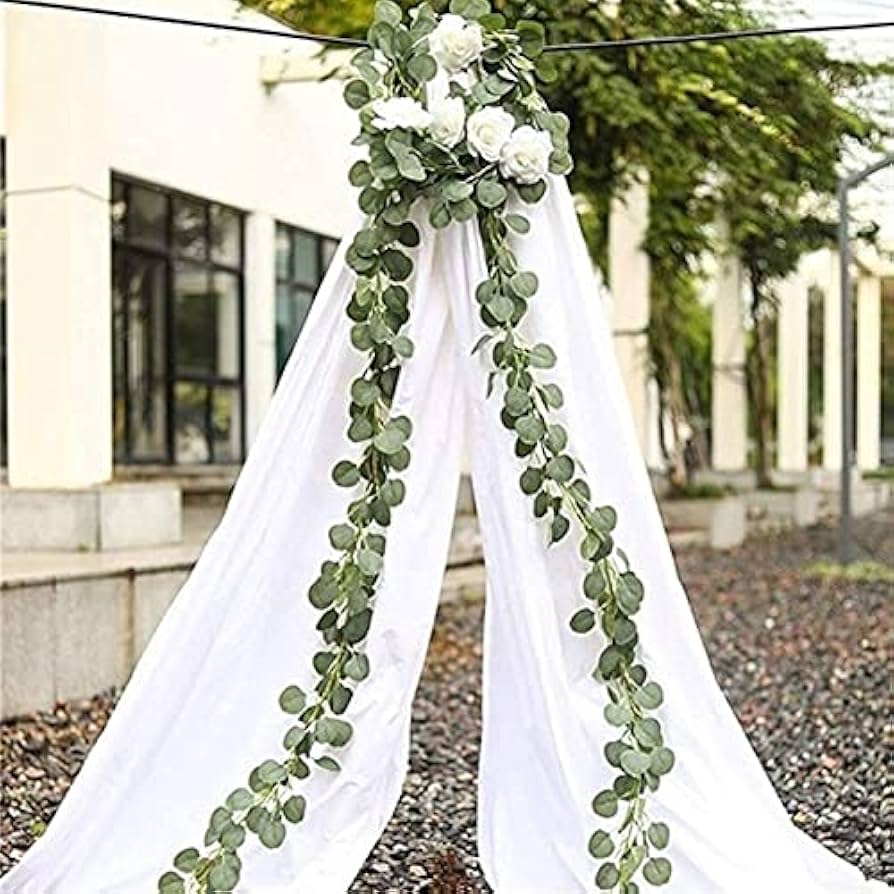 UXORSN 2 Pezzi Artificiale Eucalipto Ghirlanda Di Fiori Con Rosa Di Bianca Finta Vite Verde Foglia Di Eucalipto Falso Sospeso Edera Piante Per Nozze Tavolo Parete Partito Recinzione Decorazione : Amazon.it: Casa