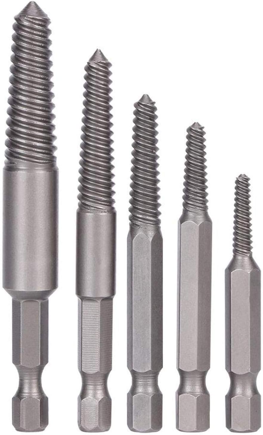 5 Estrattori Per Viti, Set Di Rimozione Di Viti Rotte, Kit Di Estrattori Per Viti Spogliate, Codolo Esagonale, Denti Fini, Strumento Di Rimozione