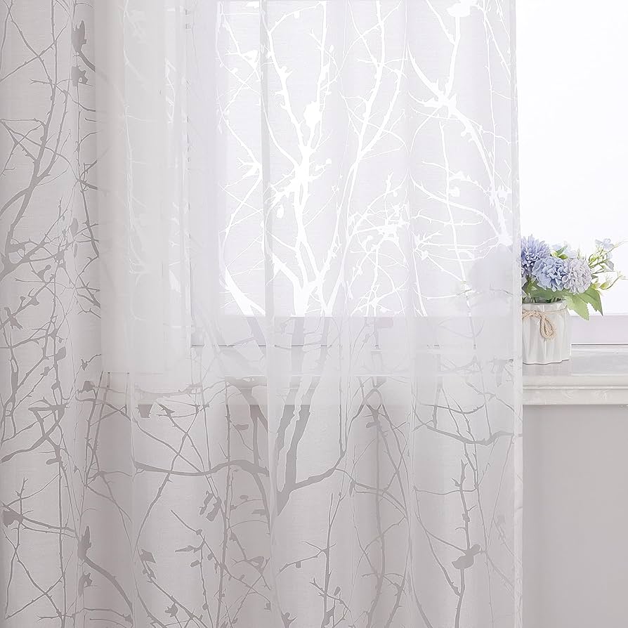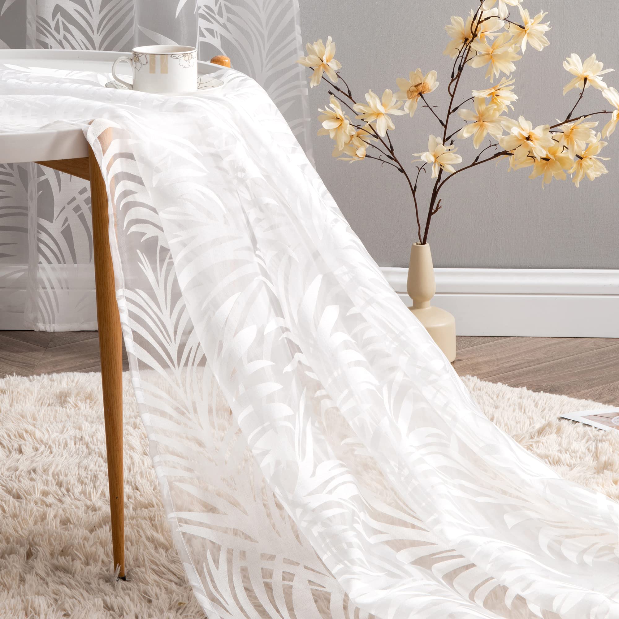 Delien Tenda In Voile Con Motivo A Foglie, Trasparente, Con Occhielli, Per Soggiorno, 140 X 175 Cm, Colore Bianco, 1 Pezzo