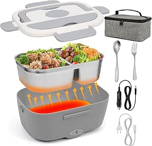 【Impermeabile & Pulizia Facile】Doppie guarnizioni in silicone sul coperchio + contenitore in acciaio removibile. 【Design a Doppio Scomparto da 2x1,5 litri】Il pratico scomparto interno 2-in-1 in acciaio inox 304 (adatto per alimenti) separa in modo sicuro il piatto principale dal contorno o dallo spuntino. Colore. Grigio. ; Materiale. Acciaio inossidabile ; Marchio. Kssvzz ; Caratteristica speciale. A prova di perdite, Easy-Clean ; Capacità. 1,5 Litri Scalda Vivande Anykuu 100 W Scaldavivande Elettrico Portatile 1.8L Porta Pranzo Termico 3 In 1(12V/24V/240V Scaldavivande Elettrica Per Casa Lavabile a mano o in lavastoviglie – basta mantenere asciutta la base riscaldante. 100% sicuro per gli alimenti - privo di BPA, plastificanti e aromi metallici. 【Ideale per Chi Mangia in Mobilità】Autotrasportatori, lavoratori fuorisede o professionisti in ufficio: il design compatto si adatta a qualsiasi cabina/borsa. 【Set Completo con Accessori Premium】Incluso set di stoviglie in acciaio inox (cucchiaio + forchetta). Grazie alla tecnologia di riscaldamento PTC ad alta efficienza, consuma poco ed è dotato di protezione dal surriscaldamento.