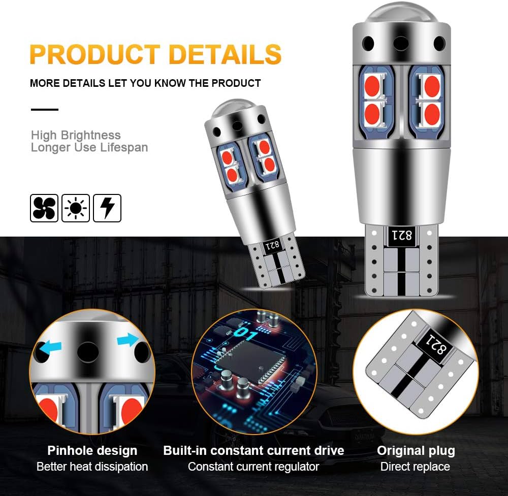 Defvnsy T10 W5W Lampadina LED con Zoccolo Cuneo T10 194 168 2825 LED CANBUS Lampada 12V DC 6000K Bianco 3014 24SMD Lampadine Per Interni Auto,Luci A Cupola,Luci Di Lettura,Luci Targa,Luci Di Posizione Per qualsiasi problema, non esitate a farcelo sapere. Illuminazione a 360°, nessun punto cieco, dissipatore di calore in alluminio aeronautico, basso consumo energetico e lunga durata (fino a 50.000 ore). Vantaggi: Canbus senza errori, non richiede decoder. Suggerimento Caldo: Controlla il numero della lampadina o il manuale dell'auto per assicurarti che si adatti alla tua auto. Luci Ambiente Auto NAO T10 LED W5W Lampadina LED 3030 SMD 168 194 5W5 Accessori Auto Luci Di Ingombro Lampada Da Lettura Auto 12V 6000K Bianco Ambra Rosso Motore Led Macchina Multiuso: Si prega di controllare il manuale prima dell'acquisto, comunemente utilizzato in luci interne, luci della cupola, luci della mappa, luci delle porte, luci di carico / bagagliaio, luci del vano portaoggetti, luci della targa e così via.