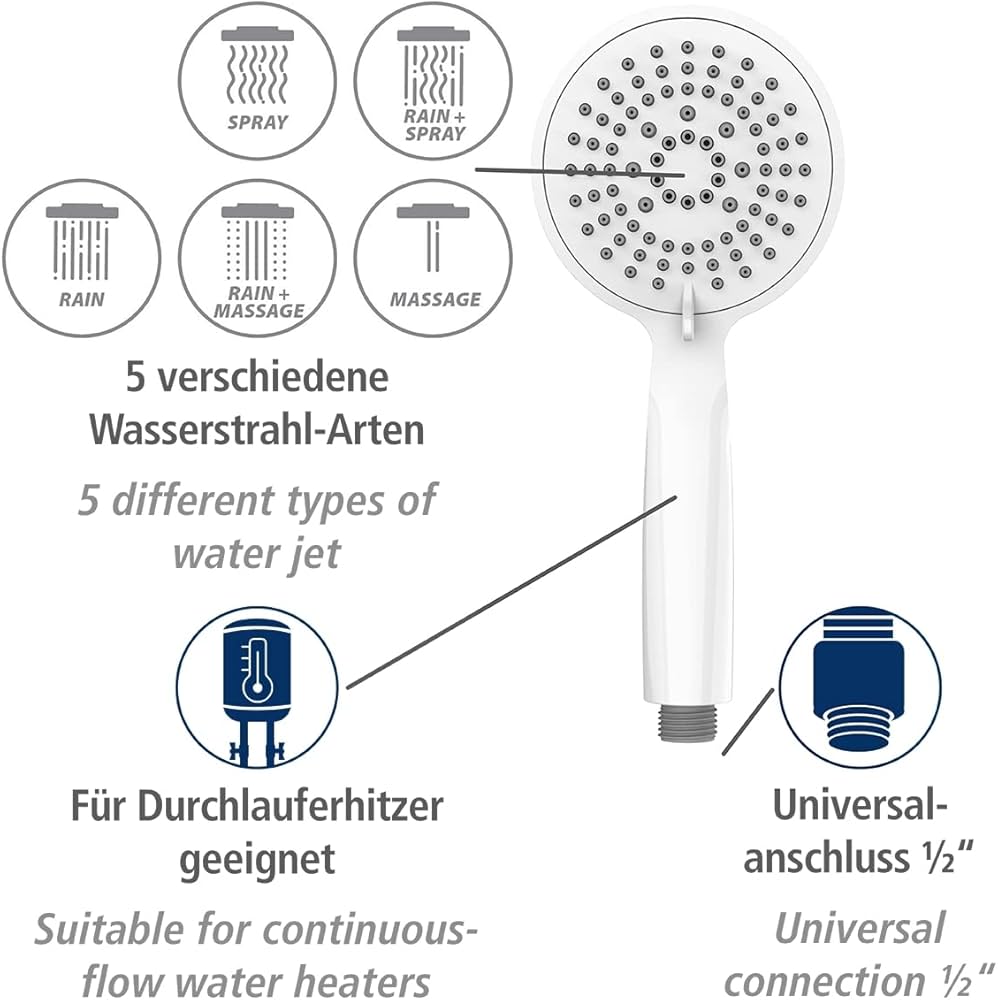 Wenko Soffione Doccia Young Bianco - Doccetta Universale, Soffione Doccia Con 5 Tipi Di Getto, ABS, 11 X 11 Cm, Bianco : Amazon.it: Fai Da Te