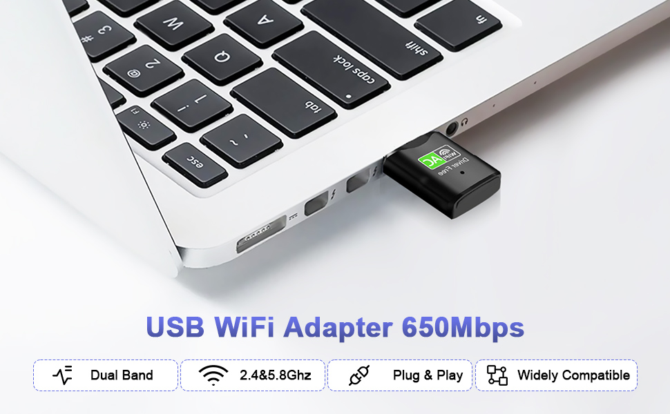 XP Vista/7/8/8.1/10 (USB WiFi 600Mbps 【Wärmeableitungsdesign】Die Rückseite des wlan stick ist mit Löchern zur Wärmeableitung versehen, durch die die Wärme während des Gebrauchs abgeleitet werden kann, wodurch die Lebensdauer des Produkts verbessert und verlängert wird. 【Ampia compatibilità】 L'adattatore WLAN USB 650M dual band supporta WinVista/Xp/Win7/8/10/11. 【Sicurezza WLAN】 L'adattatore WLAN USB per PC supporta le modalità di sicurezza avanzate WPA/WPA2 e garantisce una rapida crittografia wireless. Wifi Usb Adattatore USB Wifi 1300Mbps Wi Fi Adatper 5ghz An... – Grandado Chiavetta Wifi GRANDE COMPATIBILITÀ Il nostro adattatore wireless è compatibile con un'ampia gamma di sistemi operativi Windows, tra cui Vista, XP, Win7, Win8.1, Win10 e Win11. 【Trasmissione a doppia banda】Questa chiavetta USB WLAN per PC supporta la trasmissione a doppia banda a 2,4 GHz e 5 GHz, offrendo velocità fino a 650 Mbps, ideali per la navigazione veloce, i giochi online e lo streaming video HD. COMPATTO E PORTATILE Il nostro adattatore wireless ha un fattore di forma ridotto che lo rende incredibilmente facile da portare con sé e non occuperà molto spazio sulla vostra scrivania.