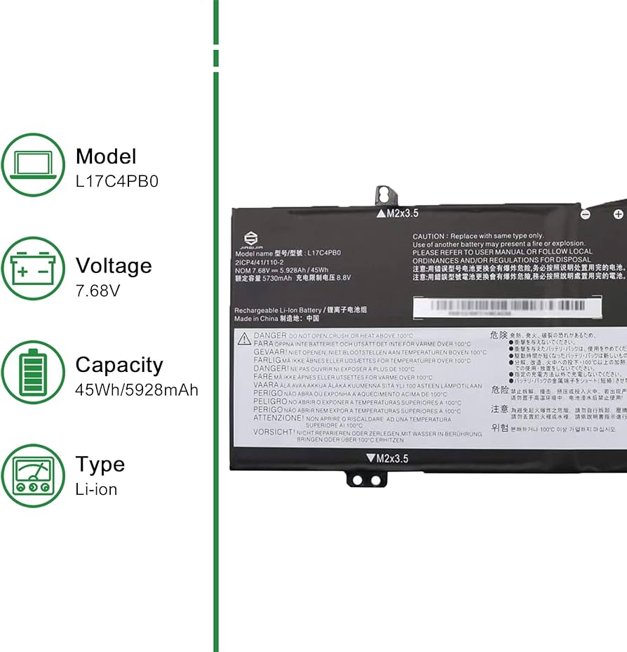 Buy GREENTECH L17C4PB0 BATTERY FOR LENOVO IDEAPAD 530-14IKB 530S - 14ARR 530S - 14IKB 530S -15IKB YOGA 530-14ARR FLEX 6-14ARR FLEX 6-14IKB 45WH 5B10Q16066 L17M4PB0 5B10Q16067 with fast shipping and top-rated customer service. shopping upgraded Ci impegniamo a risolvere qualsiasi situazione in cui il nostro prodotto non soddisfi le vostre aspettative. 【Numero di parte compatibile】L17C4PB0 L17M4PB0 L17M4PB2 L17C4PB2 5B10Q22882 5B10Q16066 5B10Q16067 5B10Q22883 2ICP4/41/110-2 3ICP4/41/110. 【Modelli di notebook compatibili】Yoga 530-14ARR 530-14ARR-81H9000UGE 81H90027 530-14IKB 530-14IKB-81EK 81EK005PGE Flex 6-14IK Flex 6-14IKB-81EM 81EM000WUS 6-14ARR Flex 6- 14ARR-81HA 81HA000AUS IdeaPad 530S-14IKB 530S-14IK-81EU 81EU007CGE 530S-14ARR Xiaoxin Aviation 14IKBR Xiaoxin Air 14ARR Xiaoxin Air 15IKBR Xiaoxin Air 15A Xiaoxin Air 15 IWL ecc. 【Specifiche della batteria】Modello: L17C4PB0 ; Tipo: Ricaricabile ai polimeri di litio; Tensione: 7,68V; Capacità: 45Wh/5928mAh; Numero di celle: 4 celle; Durata della batteria: fino a 1.000 cicli di ricarica durante la vita della batteria. 【Acquista con fiducia】 Garanzia di rimborso di 30 giorni e garanzia di 12 mesi. Supporto via e-mail 24/7. Se avete domande, vi preghiamo di contattarci direttamente. Batterie A Fully. L17C4PB0 Replacement Laptop Battery Compatible With Flex 6-14ARR 14IKB IdeaPad 530S-14ARR 14IKB 15IKB Series 5B10Q16067 L17M4PB0 5B10Q16066 L17M4PB2 5B10Q22883 L17C4PB2-7.68V 45Wh In | Whizz Batteries Lenovo Ideapad Il produttore è 100% nuovo di zecca e ogni batteria ha superato i test di fabbrica.