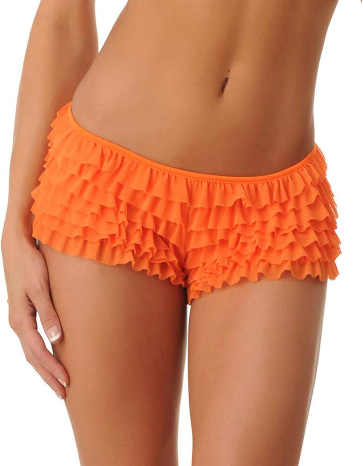Women's Multi-Layer Lace Ruffled Mini Bloomer Tie Front Elastic Low Waist Frilly Lolita Floral Shorts