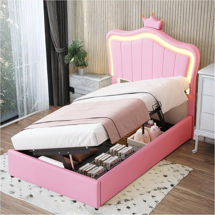 Lettini Per Bambini Prezzi Lettino Per Bambini, 140 X 200 Cm, Letto Singolo A Farfalla, Letto Imbottito Con Luce LED Letto Singolo 90x200 Con Letto Estraibile Materiale PU ecologico e facile da pulire: il tessuto PU ecologico e il materiale MDF facile da pulire sono stati selezionati per portare salute e comfort nella tua casa. Pratici cassetti: due cassetti spaziosi soddisfano le esigenze quotidiane di conservazione e mantengono più ordine in casa La struttura del letto in legno è più traspirante e rende il sonno del tuo bambino più confortevole. Facile da montare: tutte le parti, gli strumenti e le istruzioni sono inclusi. Peso e dimensioni: 209*92* 112 cm. Numero di colli: 2. Peso totale del prod Striscia luminosa colorata iridescente: la barra luminosa colorata incorporata crea un'atmosfera colorata e rende la notte piena di misteri e romanticismo