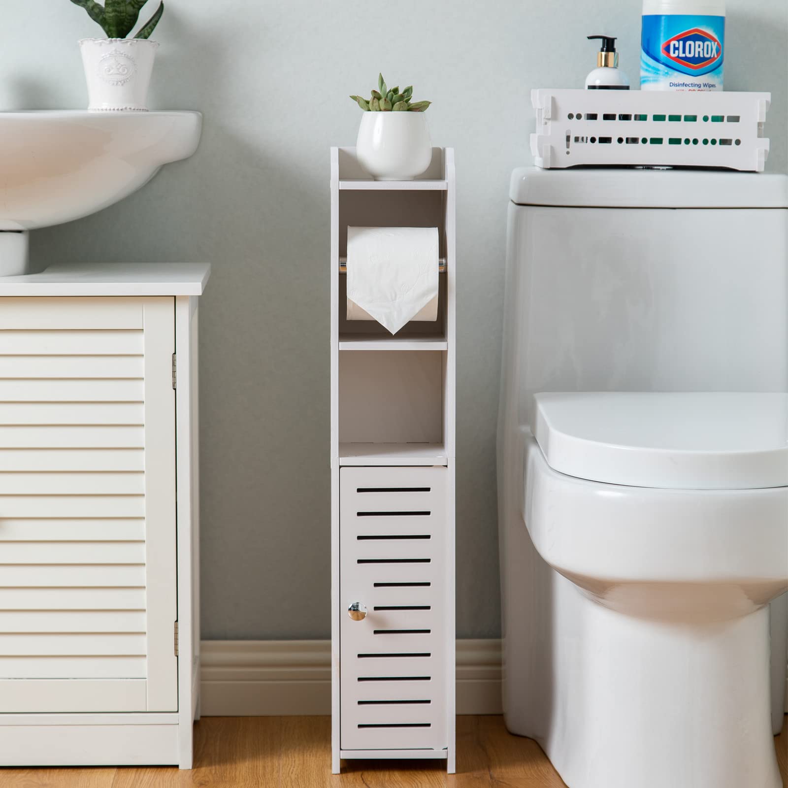XUANYU 4 Livelli Piccola Colonna Armadio Da Bagno, Mobile Portaoggetti Per WC, Supporto Per Carta, Porta Carta, Bianco - 20 × 20 × 80 Cm