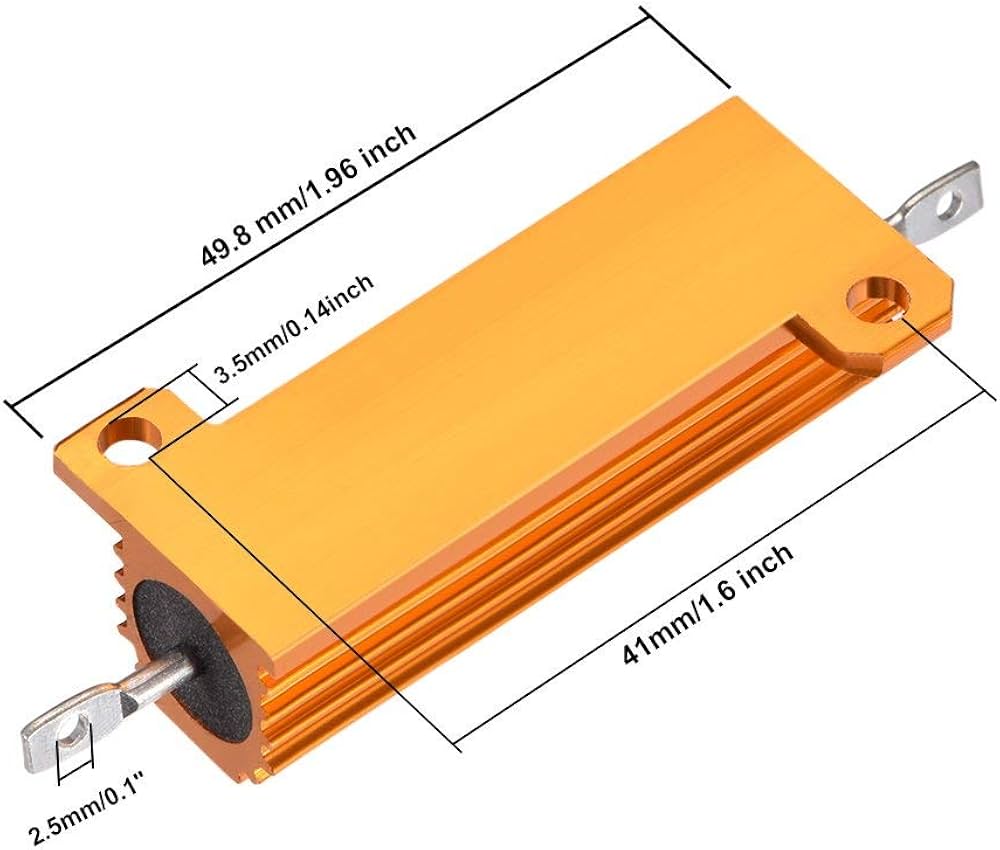 XYWHPGV 50W 4,7 Ohm 5% Resistenza Alloggiamento In Alluminio Con la struttura compatta e il design di dissipazione del calore, è stata creata una capacità di sovraccarico. Il resistore a filo avvolto possiede un'elevata stabilità e precisione. 50 Watt e 33 Ohm, tolleranza del 5%. Questo resistore da 50 W è formato con rame qualificato, nichel e alluminio. Lunghezza scheda 1,96 pollici (49,8 mm) con due fori di montaggio da 3,5 mm e 2 terminali per una connessione. Affidabile. Inoltre, è stato utilizzato per varie applicazioni a causa 'ampio intervallo di resistenza. Alloggiamento in alluminio.