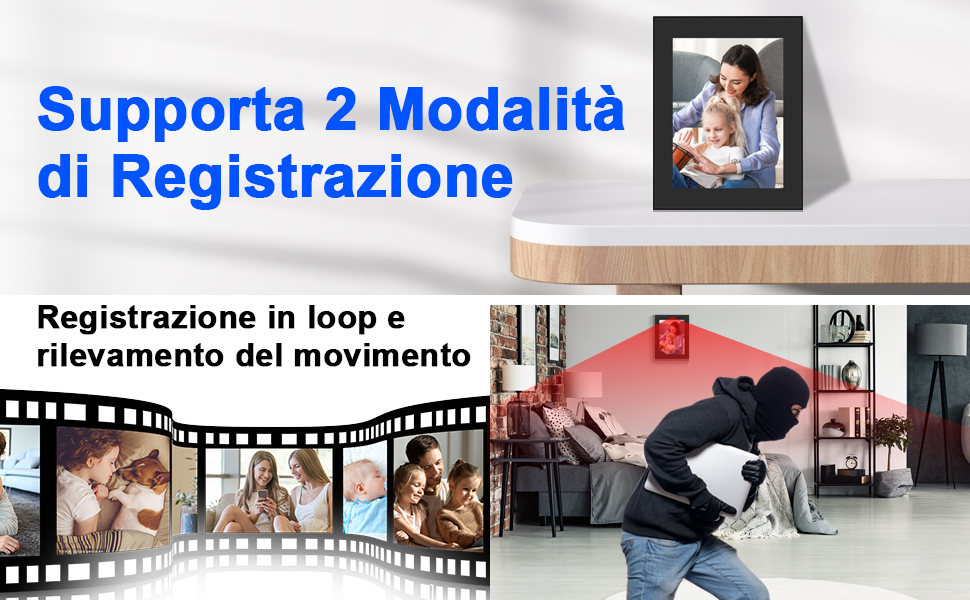 Registrazione in Loop La telecamera spia con cornice con funzione di sovrascrittura, sarà automatico per eliminare i file più vecchi per salvare i file più recenti, scheda sd max fino a 128gb (non includere). Video HD 1080P HD 1080P telecamera nascosta è facile da usare, si prega di inserire la scheda micro sd quando si prima di usarlo; cornice fotocamera spia offre HD 1080p immagini chiare con 90° vista grandangolare. Questa sveglia offre 5 livelli di regolazione della luminosità, consentendo di personalizzare il display per adattarlo a qualsiasi condizione di luce Telecamera Wifi Interno Senza Fili UYIKOO Telecamera Nascosta, Mini Telecamera Spia Cornice Fotografica Mini Nascosta Yadayuki Telecamera Nascosta, Mini HD 1080P USB Caricatore Telecamera Nascosta Supporto Di Rilevamento Del Movimento E La Registrazione In Loop Telecamera Spia Cornice per Foto Mini Camera, questa cornice può essere inserita la foto preferita con dimensioni di 10x15cm (6 Ines), che può essere collocato sulla scrivania o parete, adatto per decorare la vostra camera e ufficio Decorazione Perfetta per la Casa e Regalo, possiamo posizionare la fotocamera sulla scrivania come una cornice alla moda, la cornice può anche essere come una videocamera per registrare la crescita dei bambini e degli animali domestici. Rilevamento del Movimento Fotocamera telaio supporto di rilevamento del movimento, dopo aver impostato la modalità di rilevamento del movimento, la piccola videocamera solo la registrazione mentre rileva il movimento. Built-in Batteria Ricaricabile, questa mini telecamera spia nascosta ha batteria ricaricabile, continuare a registrare il tempo di circa 4 ore; Supporto funzione di sovrascrittura automatica, scheda sd max fino a 128gb, scheda sd non includere Descrizione prodotto LXMIMI Fotocamera Nascosta con registrazione in loop e rilevamento del movimento, continua a lavorare per circa 4 ore.