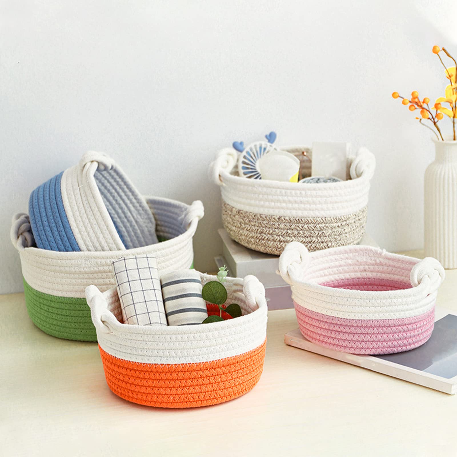 Yearonan Cestino Portaoggetti Cestino Portaoggetti Da 2 Pezzi Con Coperchio In Corda Di Cotone Giocattoli Lavabili Intrecciati Manico Per Etichette In