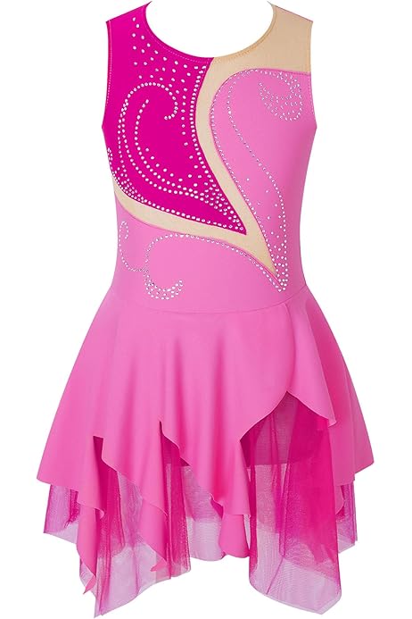 YiZYiF Abito Da Pattinaggio Artistico Sul Ghiaccio Bambina Chiffon