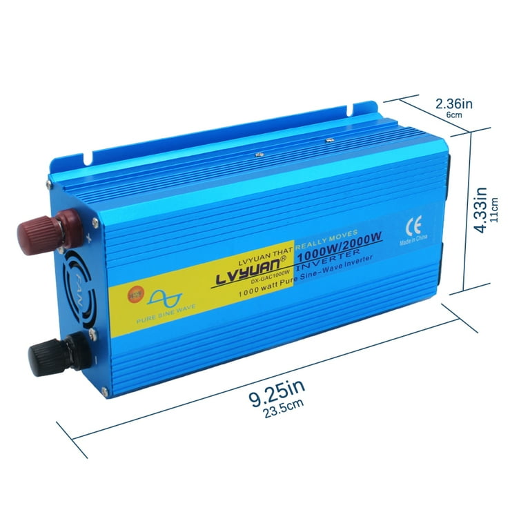 La presa 1 EU è perfetta per alimentare laptop, TV, ventilatore, DVD, GPS, lampada, strumento musicale, pannello solare o altri dispositivi elettronici. Quando la potenza del dispositivo CA collegato supera i 180 W, utilizzare la clip della batteria per collegarlo direttamente alla batteria del veicolo. Inverter Onda Pura Yinleader Convertisseur 12v 220v Sinus 2500w/5000w - Auto Inverter 12v 220v 2000w Prezzo Yinleader inverter 12v 220v Onda sinusoidale modificata Convertitore 900W 2000W trasformatore di tensione LCD USB - Nero Due porte USB. La presa 1 EU è perfetta per alimentare laptop, TV, ventilatore, DVD, GPS, lampada, strumento musicale, pannello solare Potenza di scosso: 2000 watt Frequenza: 50Hz ± 5% Forma d'onda di uscita: onda sinusoidale modificata Fusibili: corto circuito Avvio: Avvio progressivo Protezione: sovraccarico, cortocircuito, sovratensione, inversione di polarità, sotto/sovratensione Massima efficienza: 90% Ventole di raffreddamento Temperatura di funzionamento: macchina da 0 a 40 gradi Celsius Dimensione (millimetro): 212mm*112mm*60mm Peso netto (kg): 1 kg. Lunghezza cavo: 50 cm. PRESTAZIONI DUREVOLI SUPERIORI: la costruzione durevole e i materiali di qualità resistono agli ambienti difficili e a tutte le stagioni, ideali per l'uso su strada, campeggio, cantieri remoti o ovunque sia necessaria l'alimentazione CA. Il convertitore di alimentazione viene fornito con clip per batteria e un adattatore per accendisigari. Istruzioni per l'uso NOTA: 1. Le clip della batteria e l'adattatore per accendisigari sono forniti con l'inverter, non utilizzare l'accendisigari per dispositivi superiori a 150 W, si prega di utilizzare le clip della batteria. 2. Utilizzare i cavi forniti facendo attenzione a non invertire i poli più e meno. Non sovraccaricarlo. 3. Il fusibile (40A*2) è fornito internamente. 4. Si tratta di un inverter a onda sinusoidale modificato da 1000 W. La ventola continua a funzionare per raffreddare l'inverter. Se ti dispiace, spegni l'interruttore. Descrizione: Tensione di ingresso: DC 12 V (10 V - 15,5 V) Tensione di uscita: AC220V ± 5% Potenza continua: 900 W. Assicurarsi che la potenza continua sia superiore del 20% della potenza del dispositivo quando lo si utilizza per un lungo periodo. 2 pinze a crimpare 1 x clip per cavo di alimentazione per accendisigari. Contenuto della confezione: 1 x inverter.