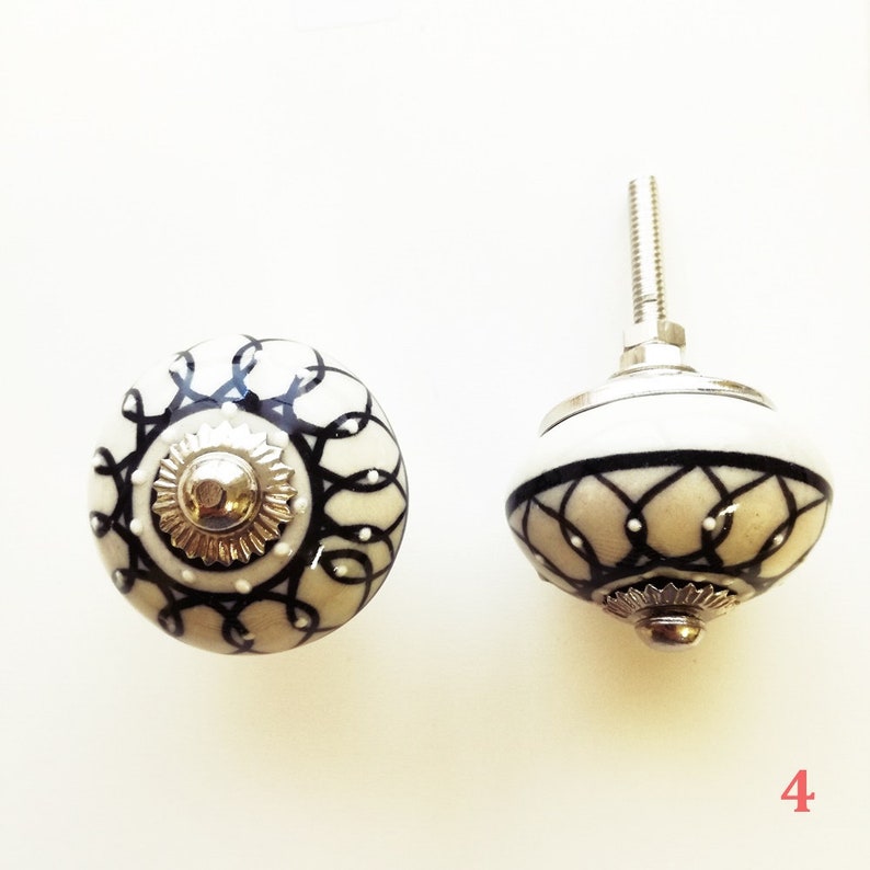 YoungschwinnDESIGN - Confezione Da 4 Pomelli Per Mobili In Ceramica, Bianco E Grigio | Diametro