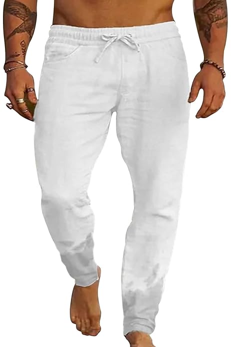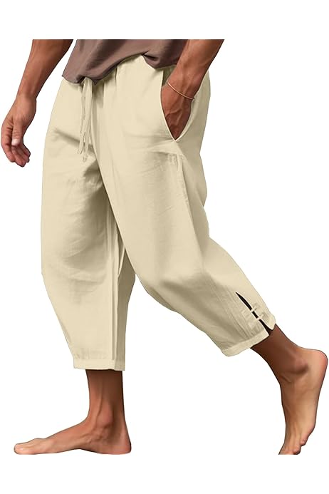 Tuta Da Lavoro Uomo Yutdeng Pantaloni Lino Cotone Uomo Estivi Casual 3/4 Pantaloni Capri Leggeri Pantaloni Harem Larghi Eleganti Pantaloni Elasticizzati Con Coulisse E Tasche Da Yoga Spiaggia Pantaloni Da Uomo Hippie
