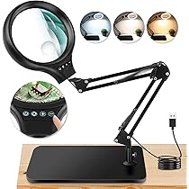 La base a clip in metallo fissa saldamente la lente d'ingrandimento su un tavolo, un banco da lavoro o un letto con uno spessore compreso tra 0 e 50 mm, lasciando libere le mani. Allo stesso tempo, la durezza della lente d'ingrandimento raggiunge 6,5H, garantendo una migliore resistenza all'usura e prevenendo i graffi. Ingrandimento 15X e 10X - La lente d'ingrandimento con luce utilizza un obiettivo ottico ad alta risoluzione per fornire una chiara visione ingrandita senza distorsioni. L'ingrandimento 15X e 10X offre un aiuto professionale a chi lavora da tempo a distan Lente Ingrandimento Da Tavolo ZABOUL 10X Lampada Con Lente D'Ingrandimento, Lente D'ingrandimento Con Luce E Supporto Con Braccio Orientabile, Lampada Da Tavolo Con 72 LED Dimmerabili Per Lettura : Amazon.it: Elettronica Lente Di Ingrandimento Con Luce La lente d'ingrandimento può essere regolata verso l'alto e verso il basso di 225 gradi e ruotata di 360 gradi. Il cavo USB lungo 1,1 m/43,3 pollici consente di collegare diversi dispositivi di alimentazione che supportano l'alimentazione USB per alimentare la lente d'ingrandimento, come computer, laptop, adattatori, alimentatori portatili e altro ancora, consentendo di utilizzarla ovunque. Ogni modalità può regolare facilmente il livello di luminosità tra il 10% e il 100%, per impostare la luminosità più confortevole. Alimentato Tramite USB per Una Maggiore Praticità - La lente d'ingrandimento con luce a 3 colori è alimentata tramite USB, rendendola più comoda da usare. Ingrandimento 15X e 10X - La lente d'ingrandimento con luce a 5 colori utilizza lenti in vero vetro di alta qualità con una trasmissione luminosa fino al 98%, offrendo una visione ingrandita nitida e senza distorsioni.
