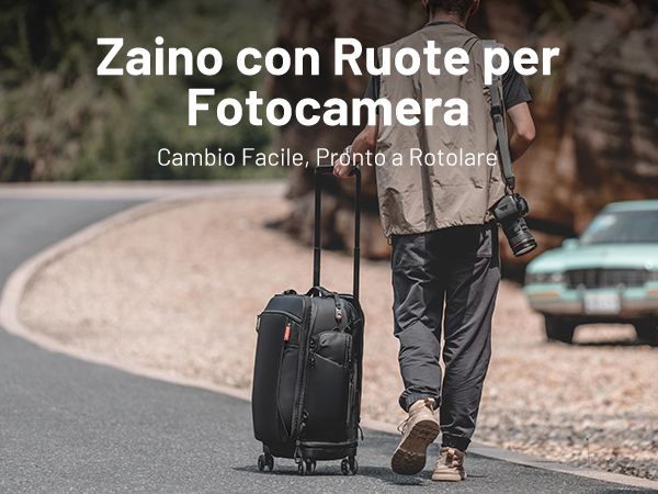 Compartimenti Organizzati: La base integrata aggiunge stabilità ed equilibrio. Accessori ad Alte Prestazioni: Le sue ruote doppie silenziose ad alte prestazioni possono essere smontate rapidamente, offrendo fino al 8% in più di spazio rispetto ai bagagli a mano generali, rispettando comunque lo standard delle compagnie aeree. PGYTECH Zaino Fotografico con Ruote 2 in 1, Trolley per Macchina Fotografica/Treppiede Fotocamera Professionale/Reflex/Mirrorless/Viaggio, Valigia e Antipioggia Compatibile con Laptop da 17 Pollici Macchina Fotografica Professionale Zaino Fotografico 2 In 1 Per Fotografia Ed Escursionismo, Nero - K&F Concept Zaino Trolley Due tasche laterali possono contenere bottiglie d'acqua o treppiedi Dispone di cerniere YKK per durata e sicurezza, cinghie per attrezzature aggiuntive, una copertura antipioggia e una tasca nascosta per AirTag per una maggiore sicurezza La maniglia in alluminio a tre stadi garantisce un'impugnatura bilanciata e facile, ottimizzando l'efficienza dello spazio Artigianato di Qualità: Lo zaino è realizzato in tessuto PU ad alte prestazioni, resistente agli schizzi, ai graffi, all'usura e alle macchie. Nota: assicurarsi che il baricentro sia stabile durante l'uso e disporre gli oggetti in modo uniforme per evitare che la scatola si ribalti