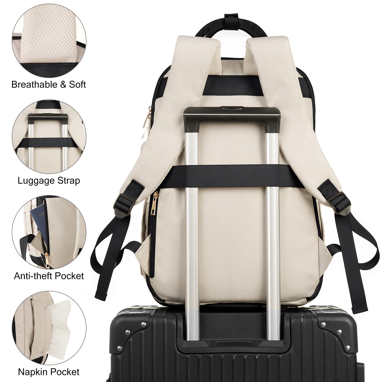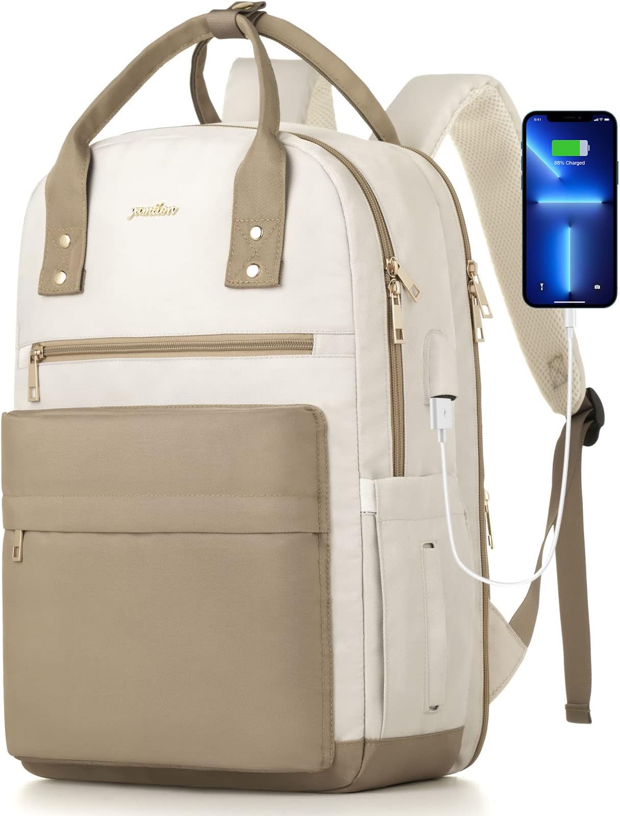 RJEU Zaino Porta PC Donna 15,6 Pollici,Zaino Donna Lavoro Zaino Universita Ragazza Per Viaggio Ufficio Sportivo Business Scuola,Impermeabile,Regali, Beige+Grigio