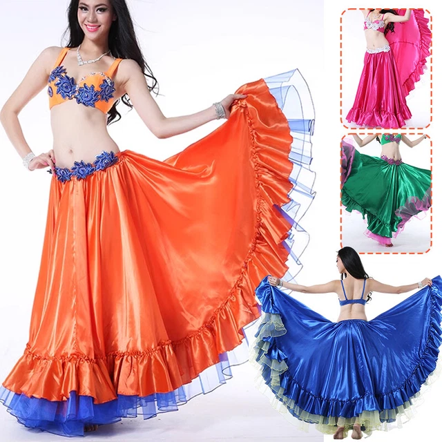 Gonna In Raso Costume Di Danza Del Ventre Donna Gonne Zingares Ballerino Pratica Indossare Gonna Lunga 12 Colori Assorti Solido Bianco Nero Arabo